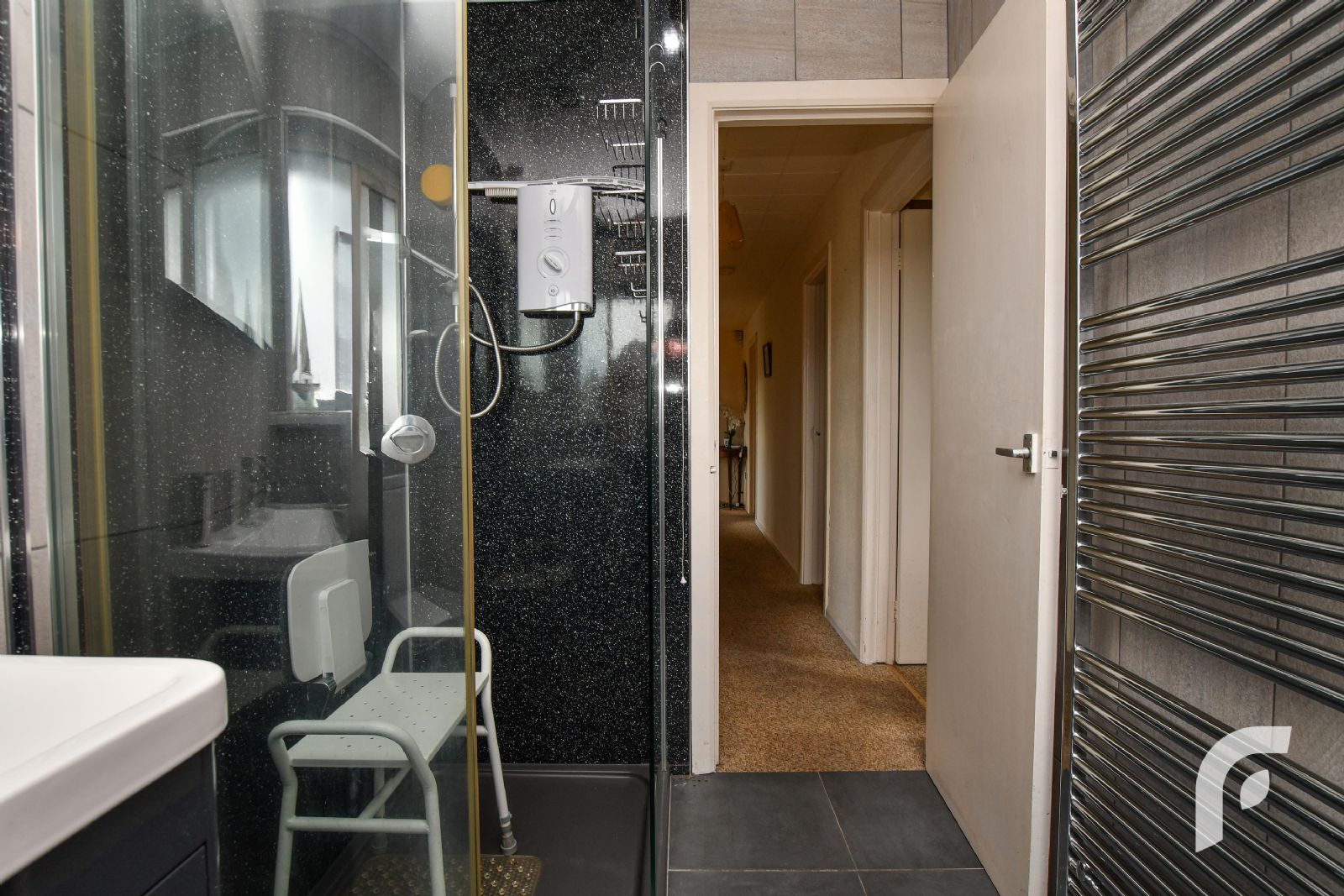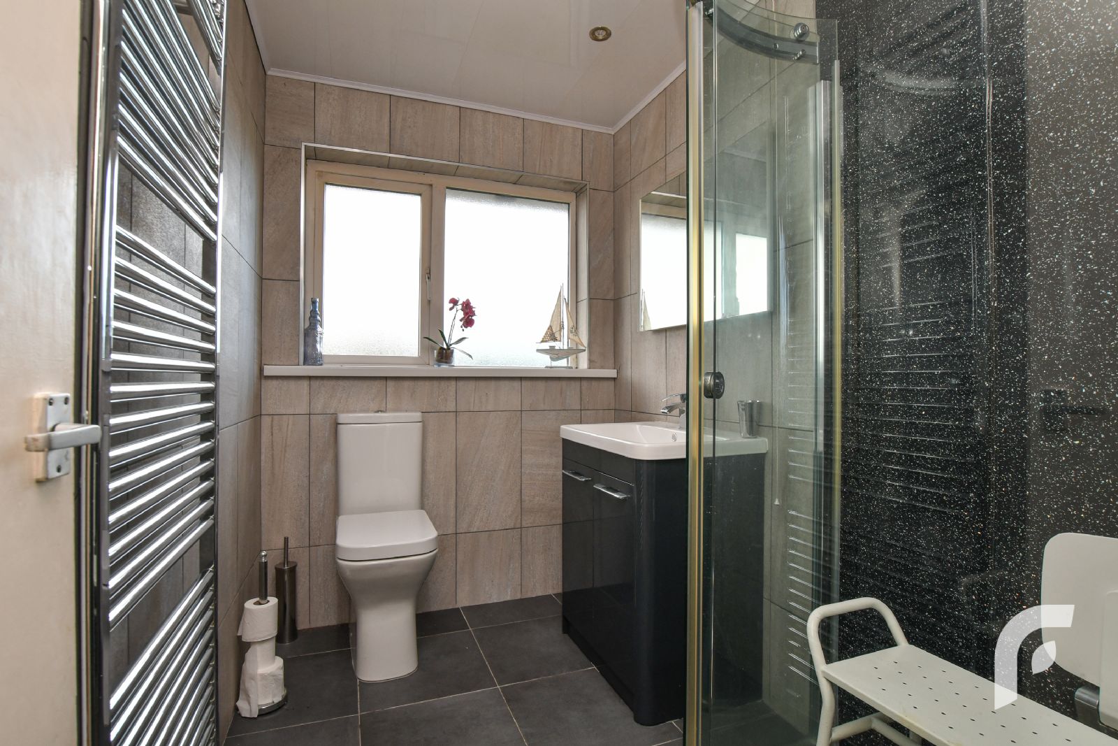 Bathroom - 8'2'x 5'3' - modern three piece suite including walk-in shower, chrome heated towel rail.