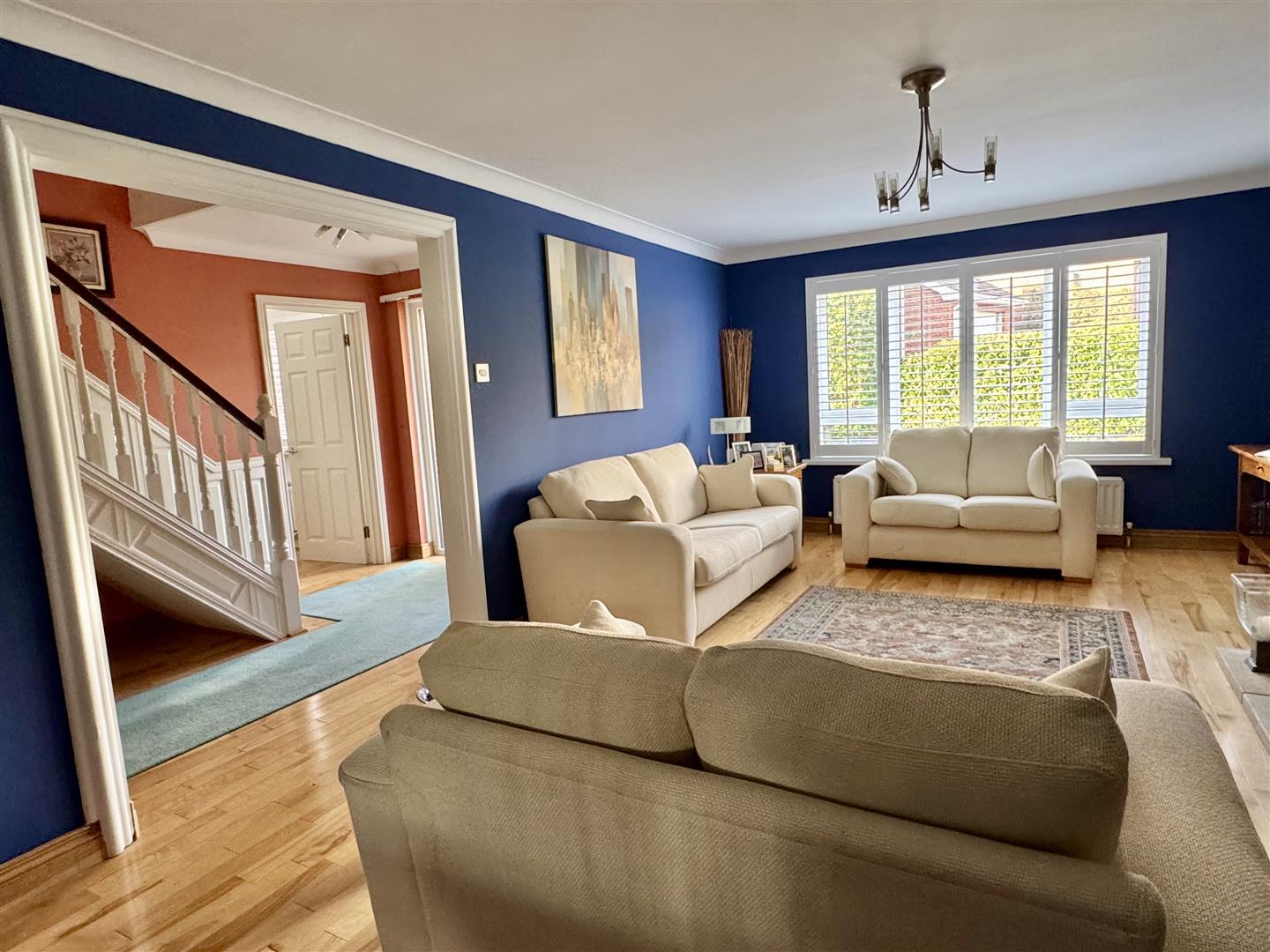 Situated within a highly regarded established development in Jordanstown. This impressive double fronted detached family home enjoys a spacious living layout creating a fabulous family home with a high internal specification throughout. The accommodation briefly comprises 5 bedrooms, 4+ receptions (including sun lounge), luxury open plan fully fitted kitchen, contemporary en suite bathroom plus modern en suite off bedroom 2 and deluxe family bathroom. Externally the property enjoys an extensive mature site with a professionally hard landscaped rear garden which benefits from a south westerly aspect. A perfect home for the growing family there is a large brick paved parking forecourt suitable for a number of vehicles and an integral double garage.