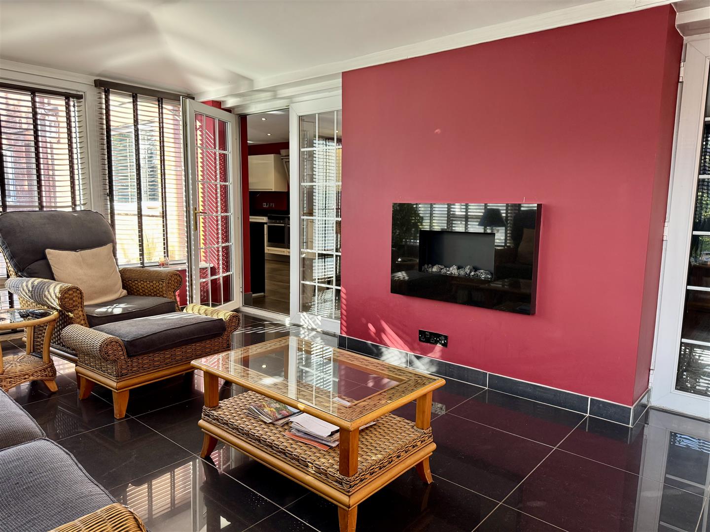 SUPERB DOUBLE GLAZED SUNROOM 214 X 13'3 (65.23m X 4.04m) Polished porcelain tile floor. Modern wall mounted electric fire. Twin PVC double glazed doors to garden and courtyard. Twin PVC double glazed doors through to:
