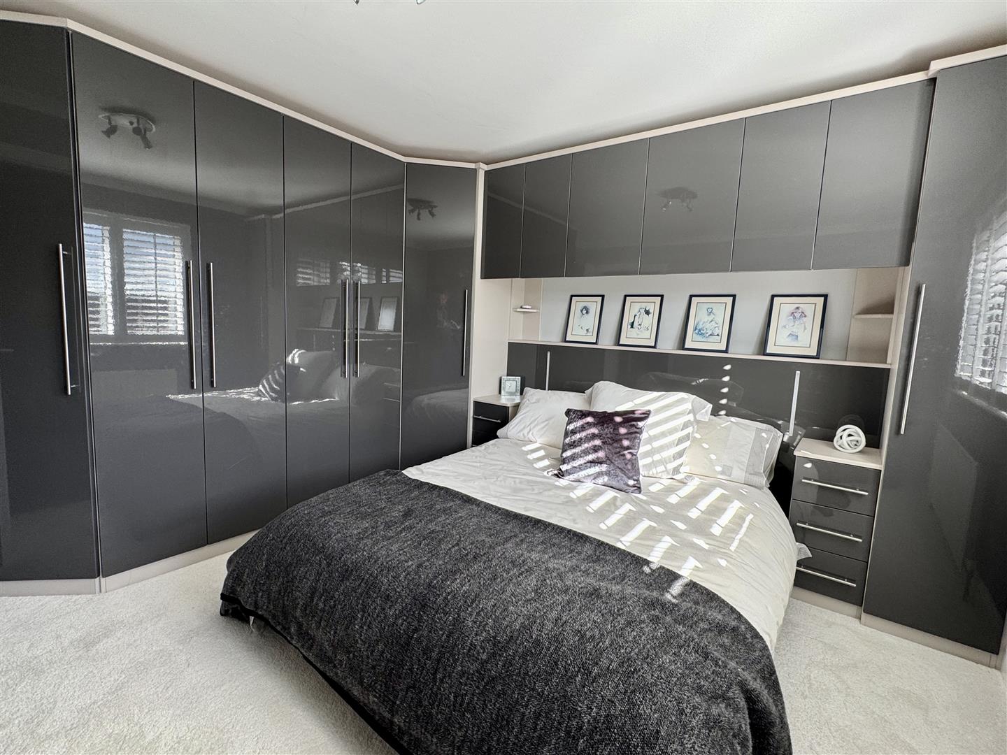 BEDROOM 4 12'6 X 11'6 (3.81m X 3.51m) Equipped with a bespoke range of modern gloss fitted bedroom furniture with fixed bedside cabinets and matching overhead storage bays in graphite grey finish