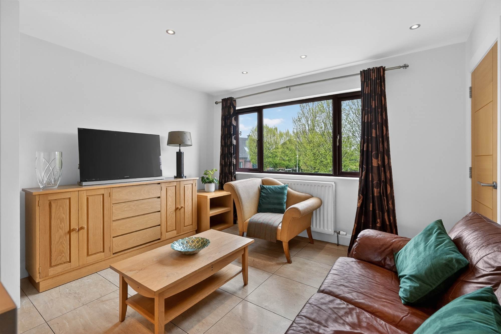 Excellent range of high and low level units iwth quartz work surfaces, two Neff ovens, Neff combi oven, Neff electric hob, Neff coffee machine, Blanco extractor fan, large Franke sink unit with mixer tap and drainer, integrated fridge, freezer and dishwasher. Central island with excellent storage, casual dining area, ceramic tiled floor. Living area with outlook to front and rear. Feature radiator.