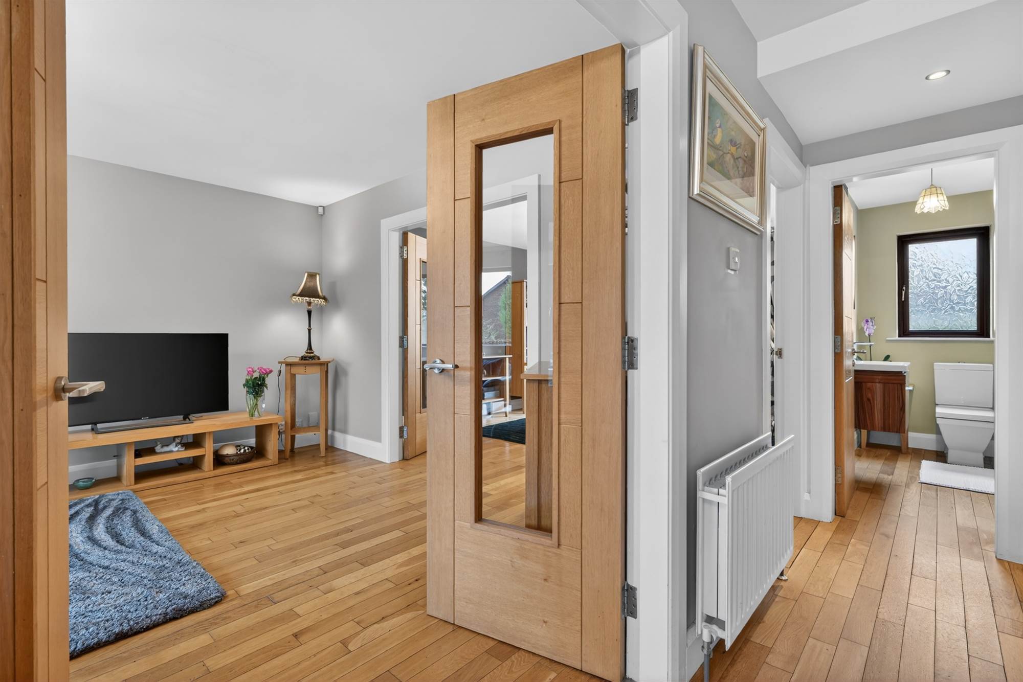 Outlook to rear. Solid oak flooring.