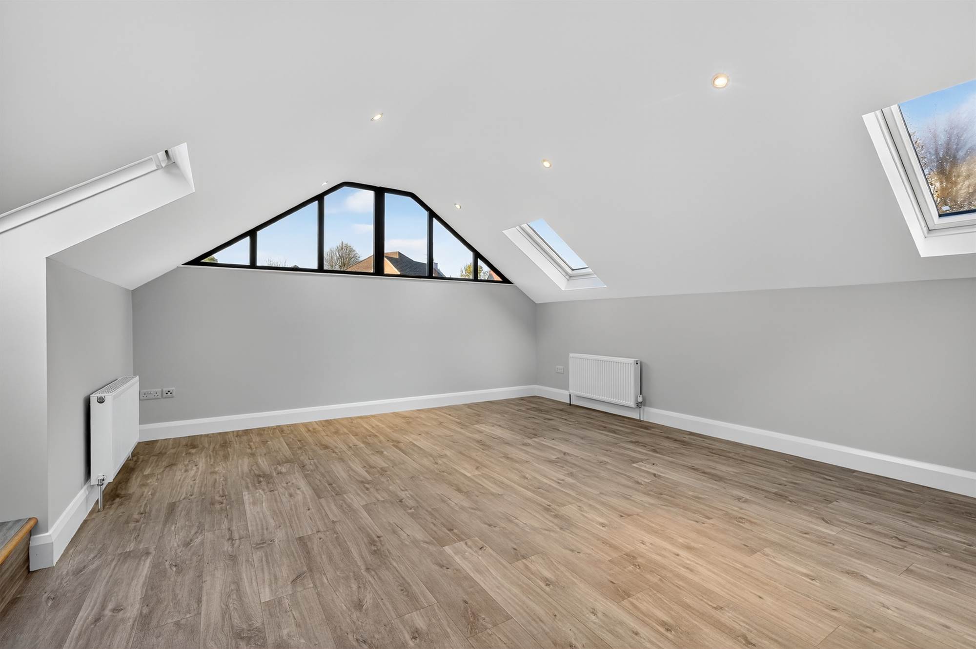 Three Velux windows, feature window with mature outlook to the University of Ulster, built-in storage cupboard, low voltage spotlights.