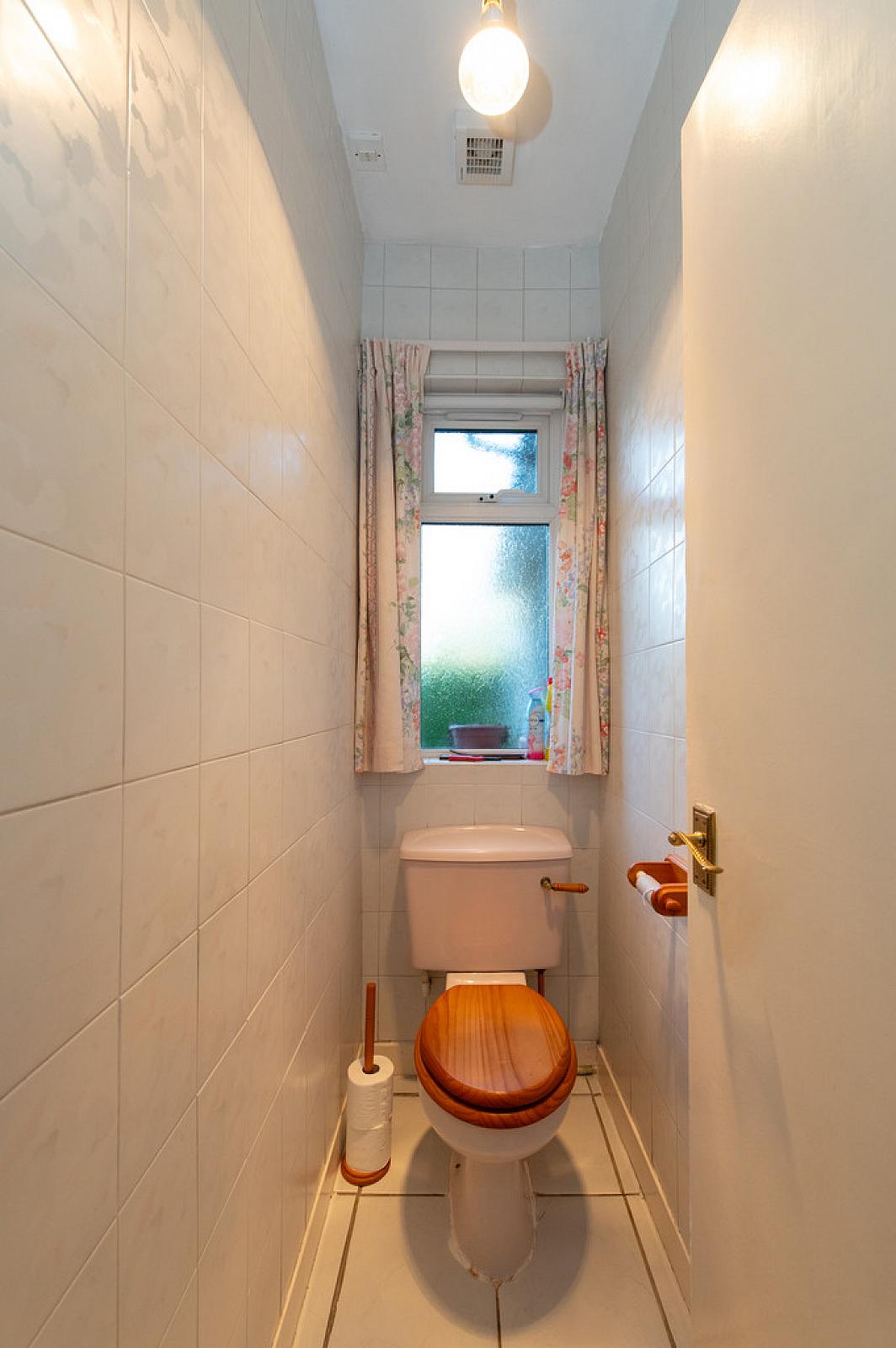 SEPARATE WC Low flush WC, ceramic tiled flooring and wall tiling.