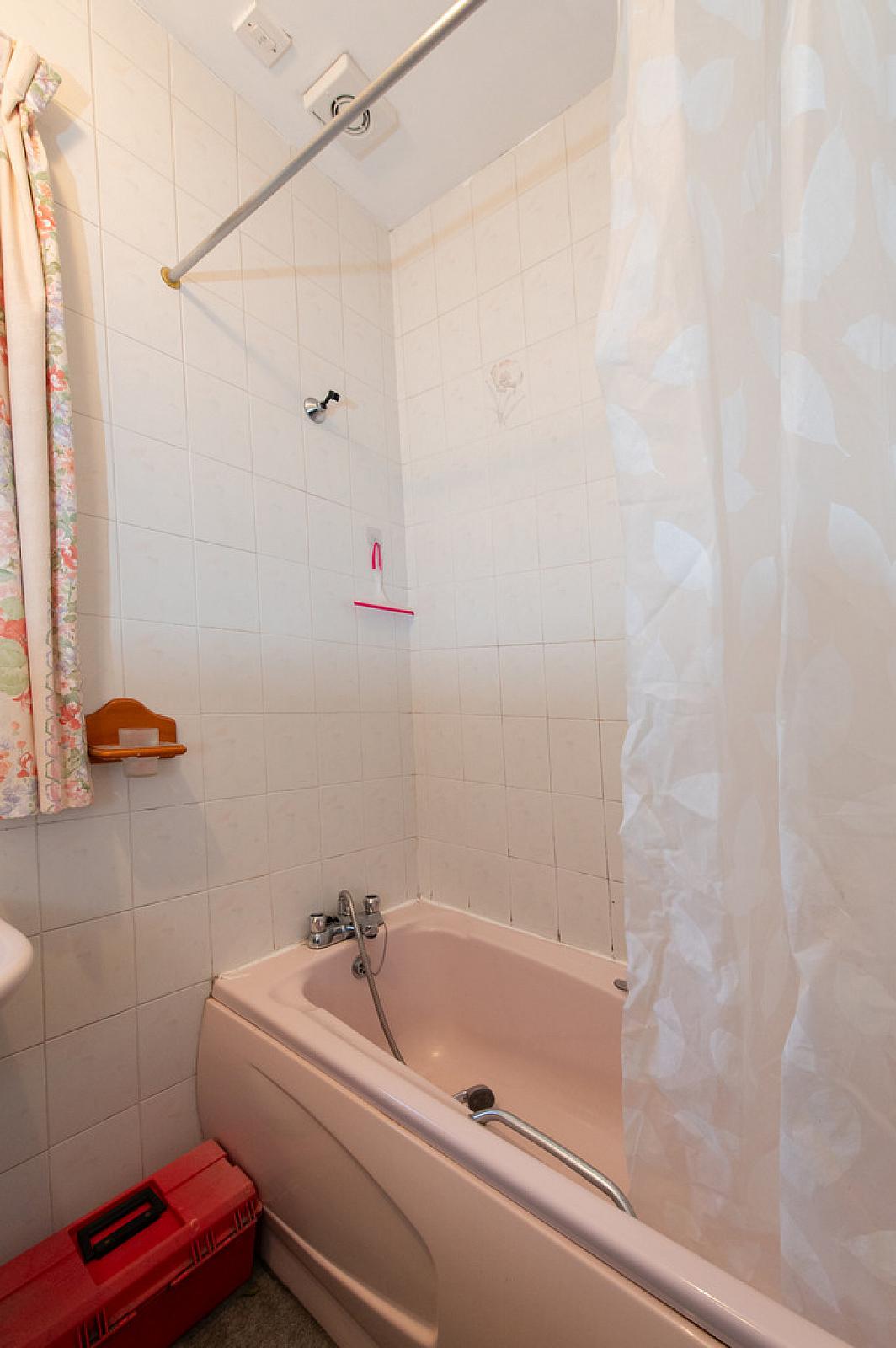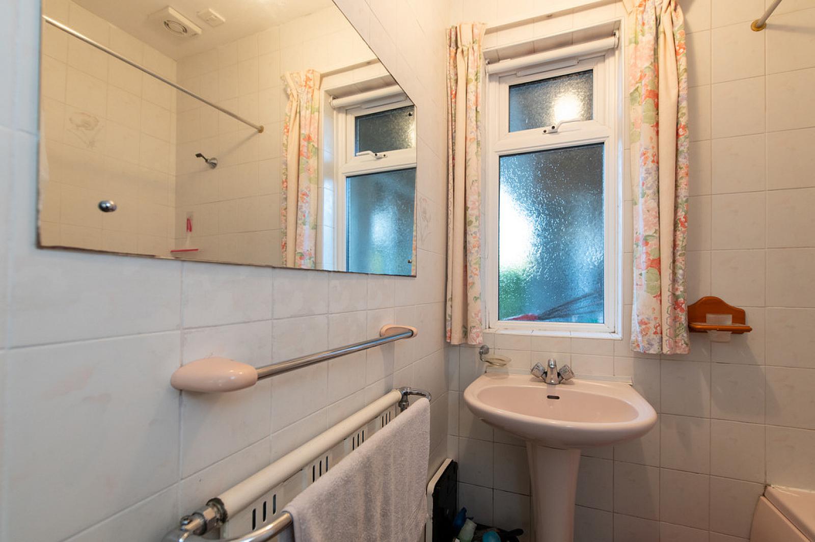 BATHROOM Light coloured suite, panelled bath with mixer tap and telephone hand shower, pedestal wash hand basin, heated towel rail, extractor fan.