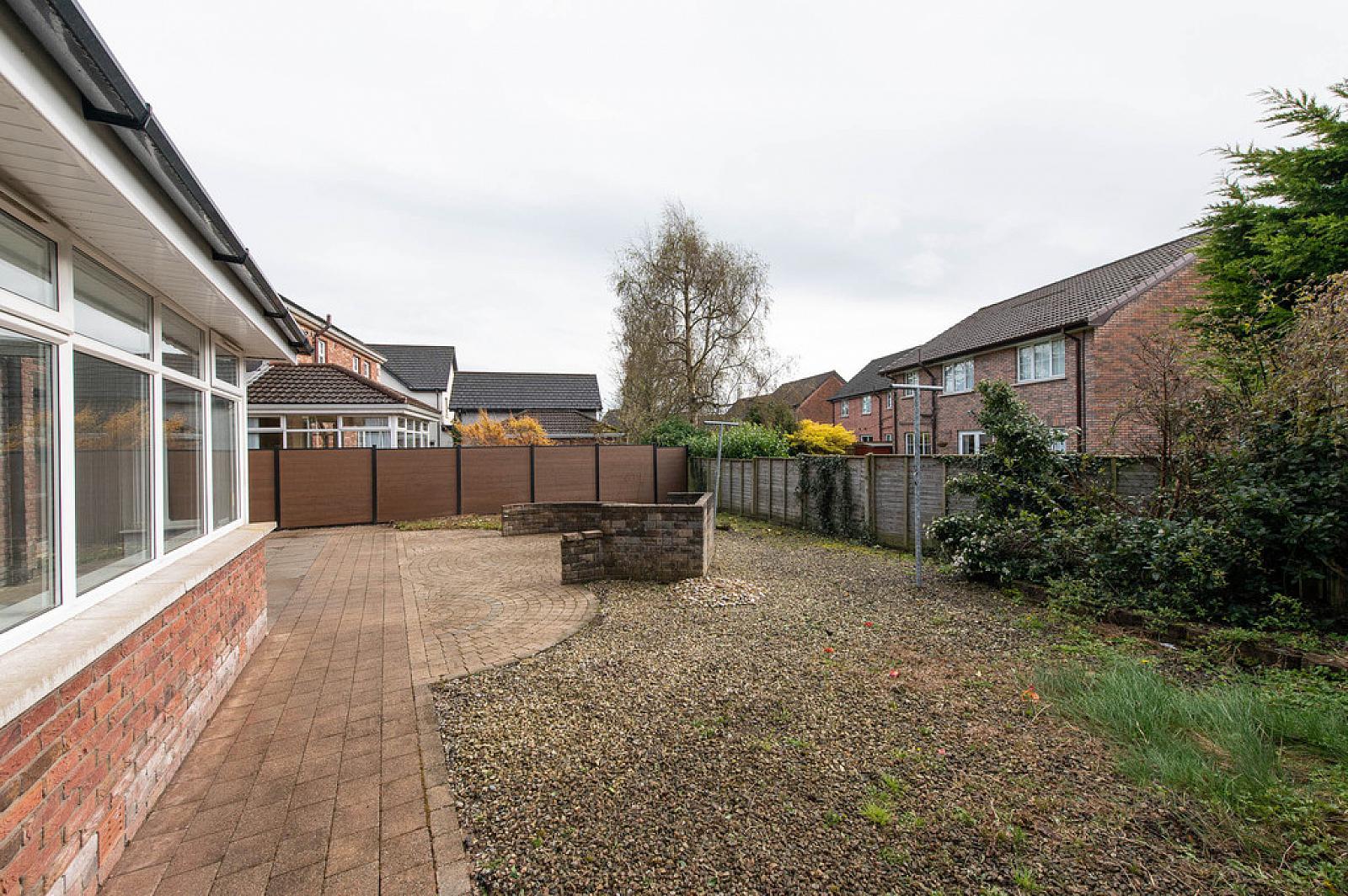 Rear garden with circular patio area.