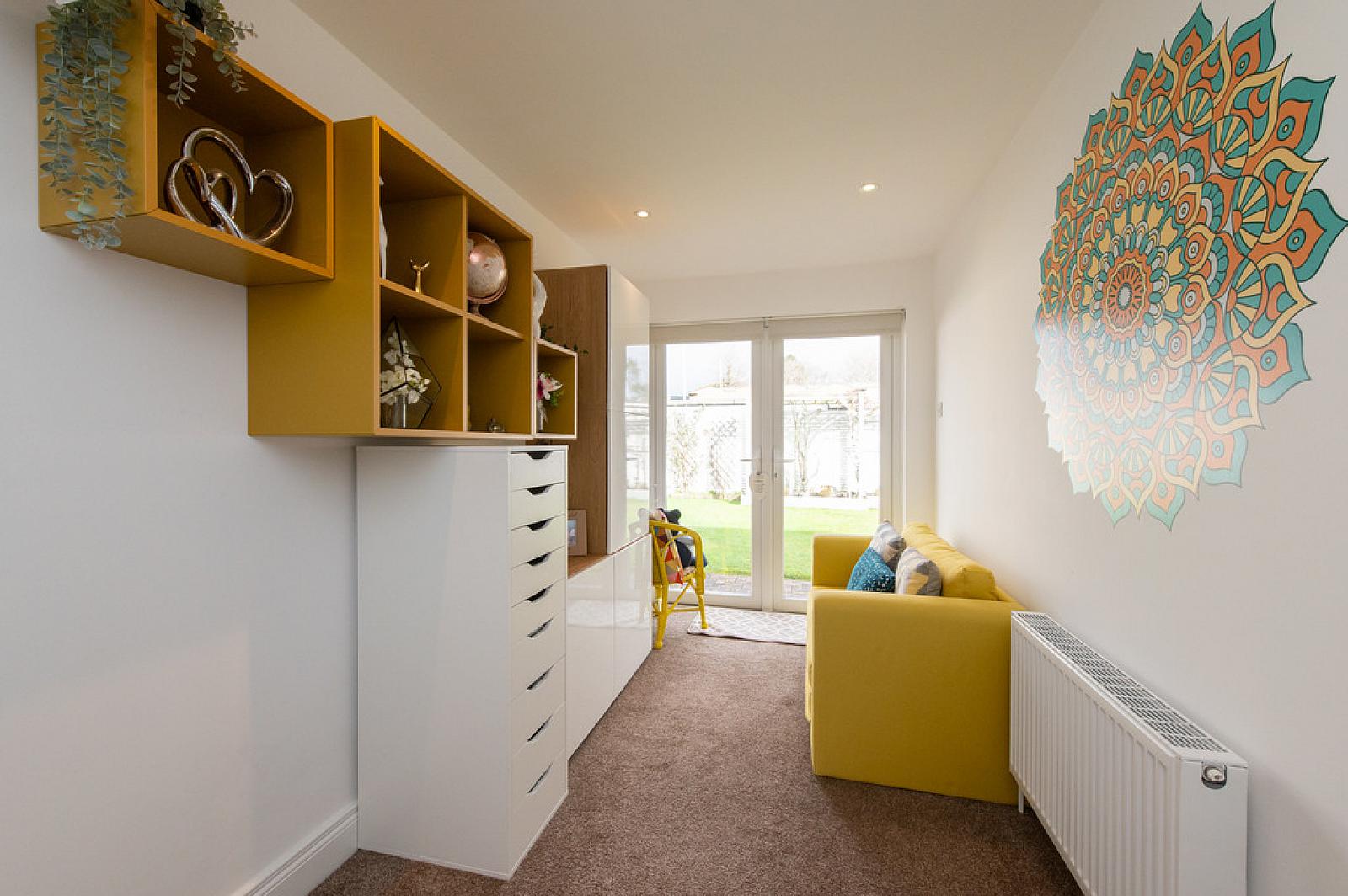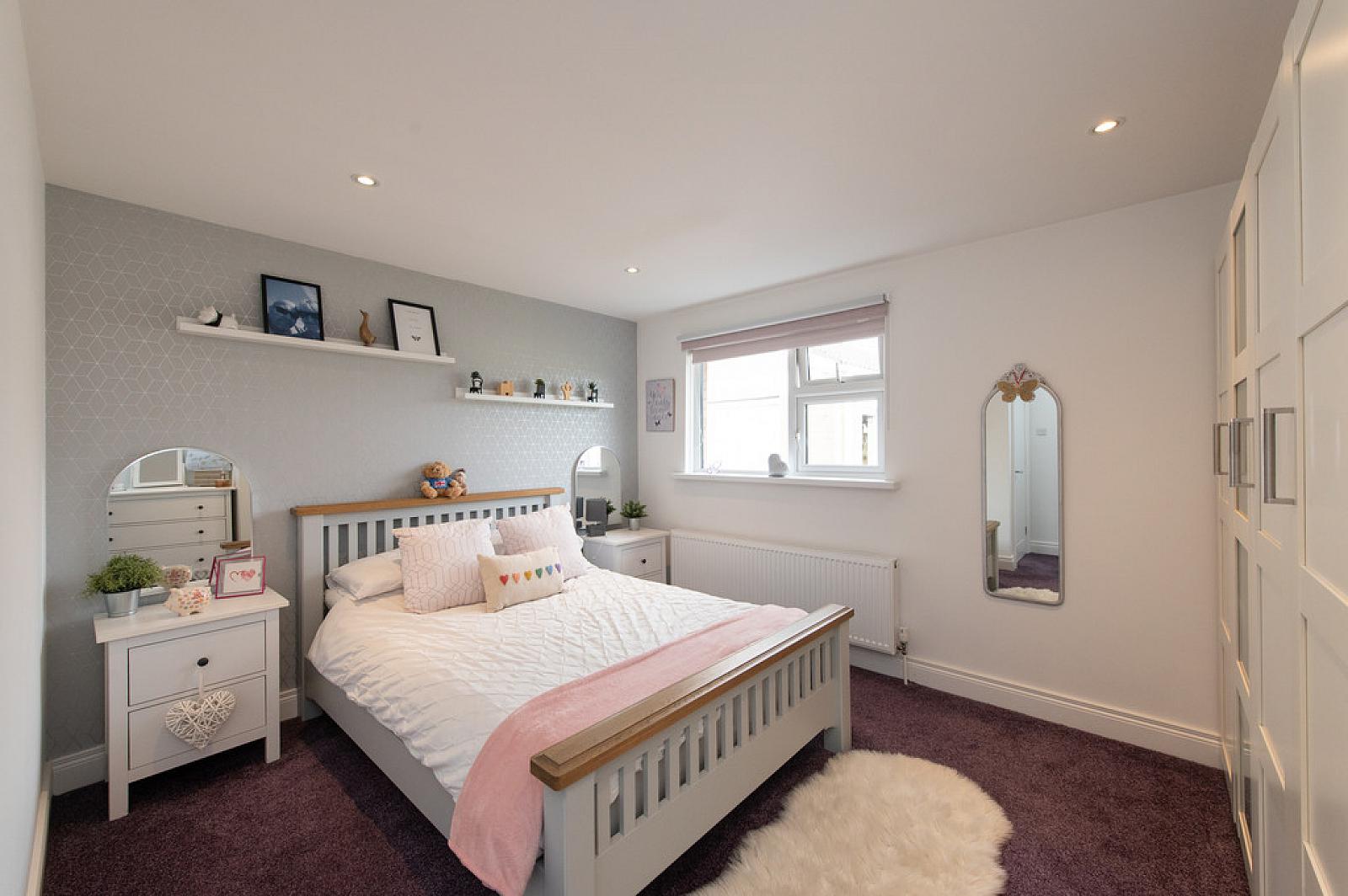 BEDROOM (3) 13' 9" x 6' 6" (4.19m x 1.98m) Downlighters, French doors to garden, access to floored roofspace