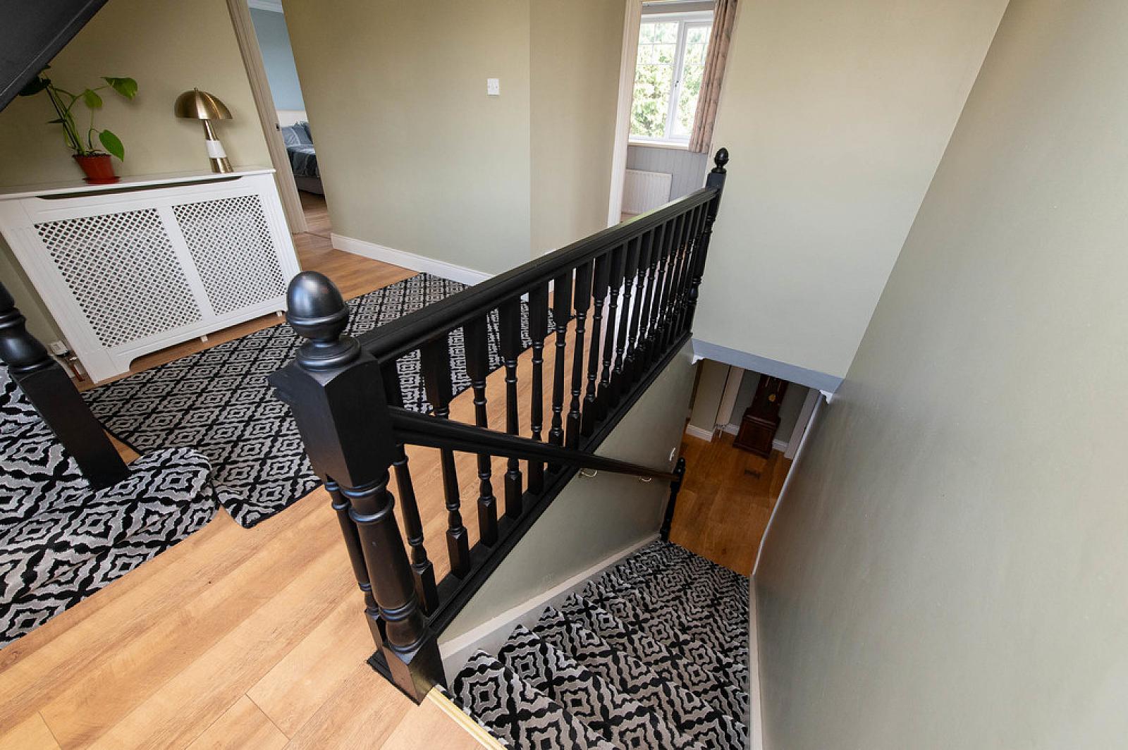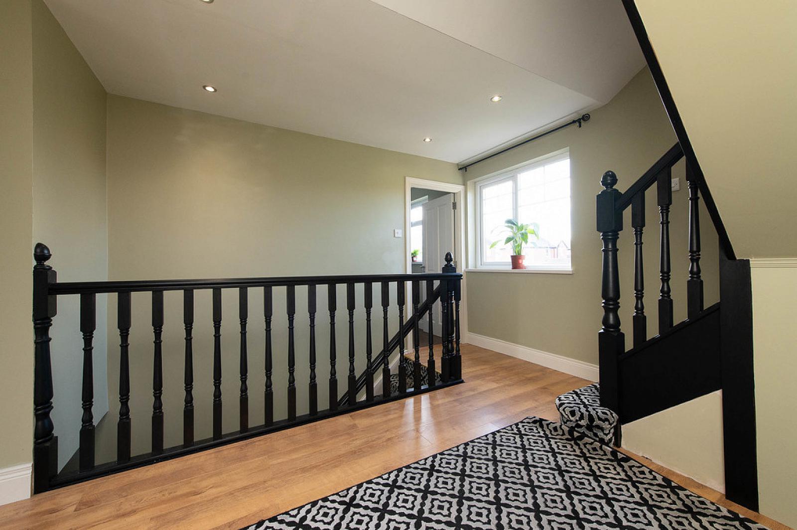 BRIGHT SPACIOUS LANDING Laminate wood floor. Downlighters.