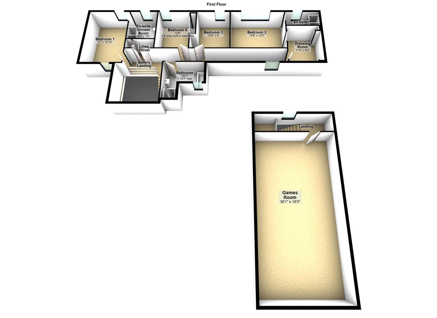 GAMES/ ENTERTAINMENT AREA (IDEAL FOR WORKING 36'0" X 19'3" (10.97m X 5.87m)