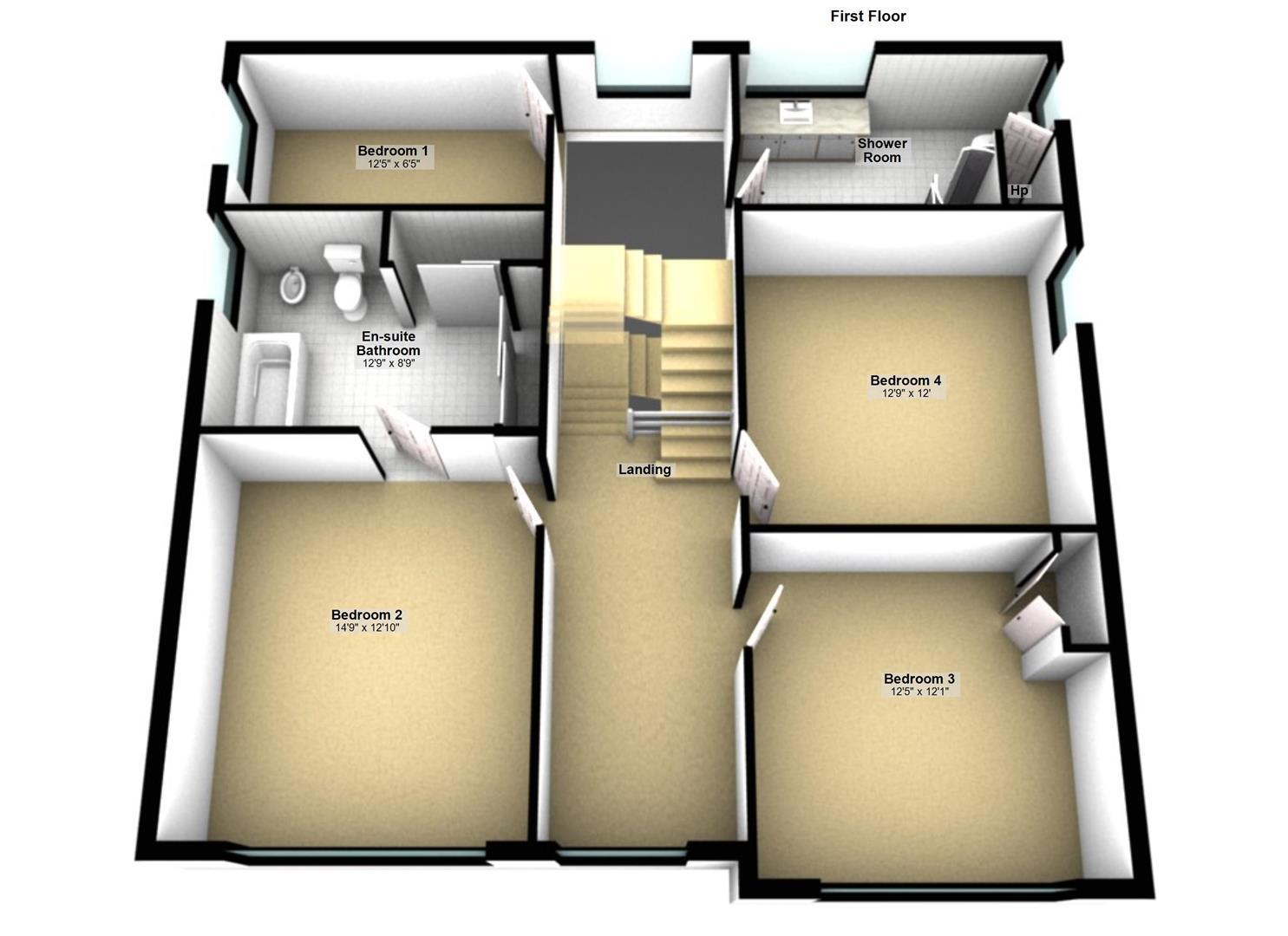 4 Bedrooms (1 with ensuite shower room plus two second floor rooms (completed approx 24 years ago)