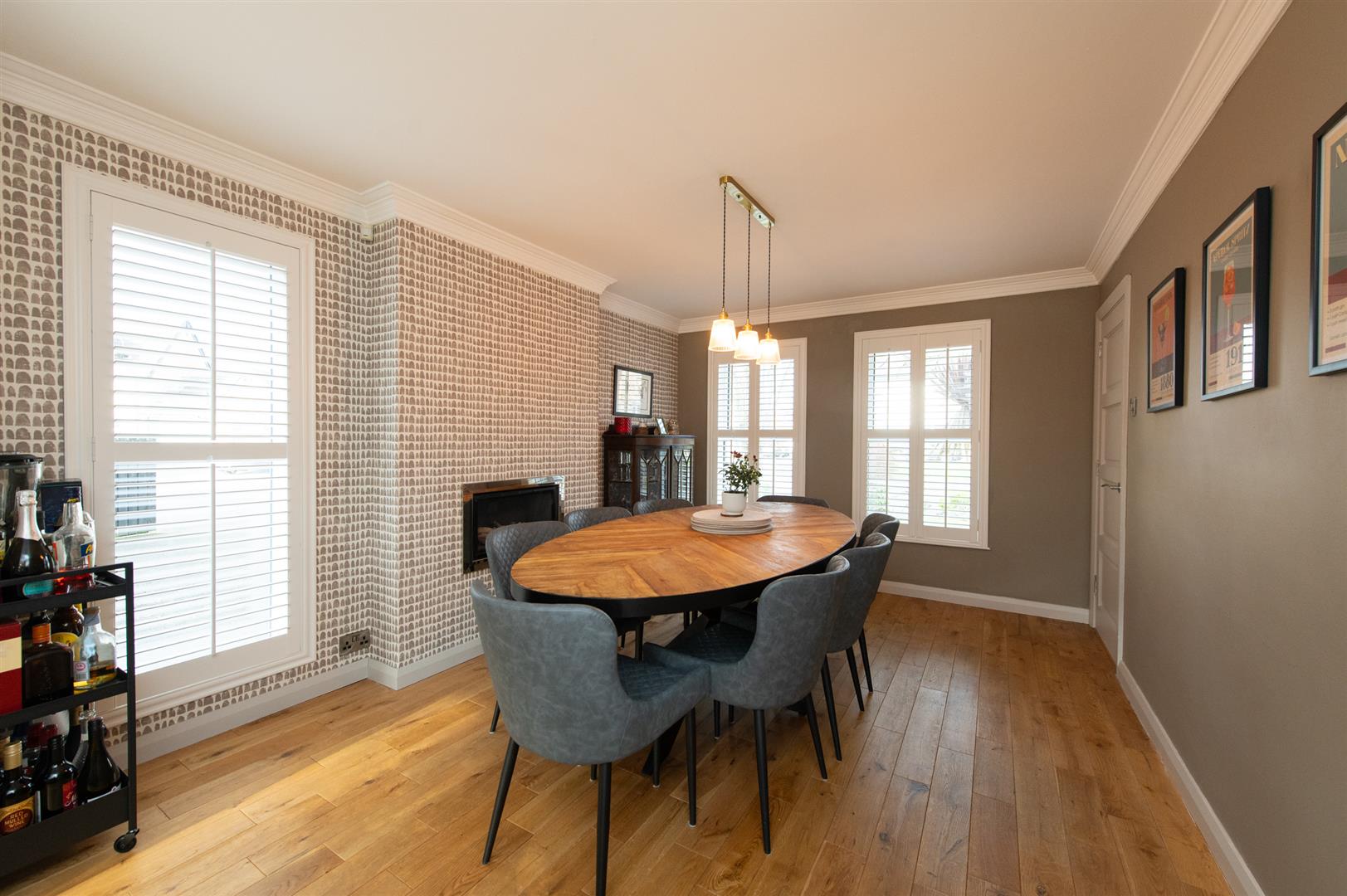 Solid wood flooring, gas fire, cornicing, window shutters, open plan to: