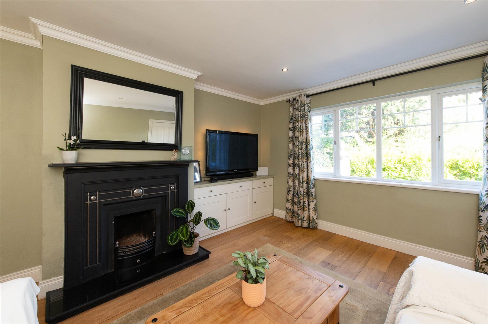 Cast iron fireplace. Tiled inset. Polished oak surround. Feature panelling. Polished wood floor. Cornicing. French doors to garden.
