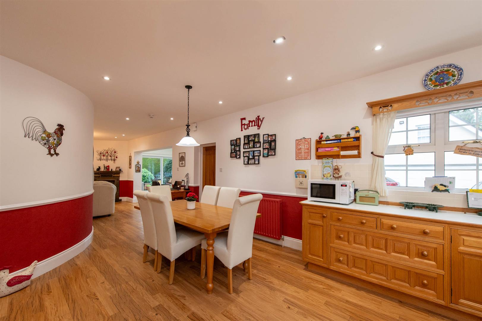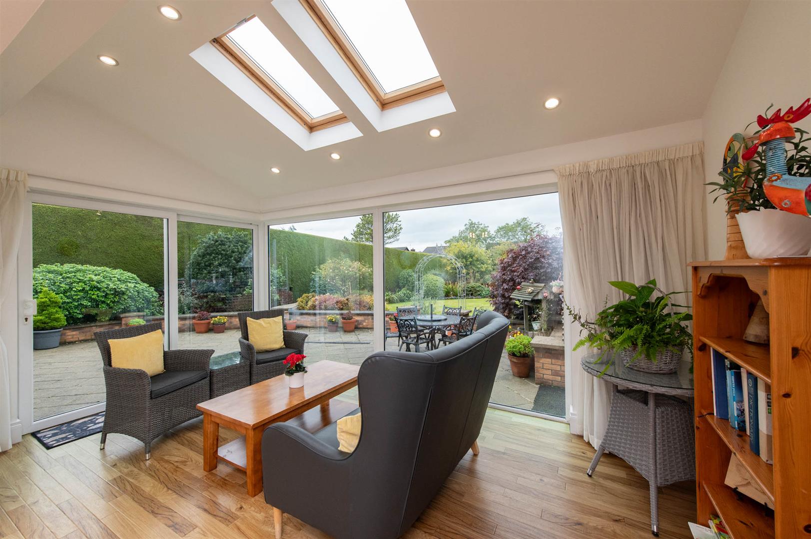 Karndean flooring, Velux roof window light, downlighters, sliding patio door to rear