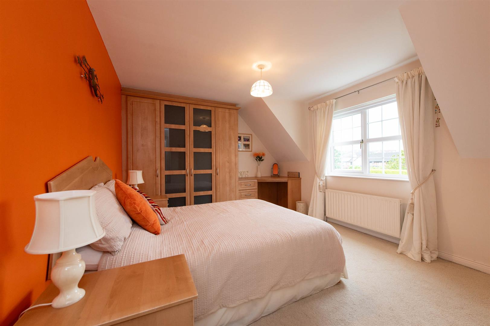 Laminate wood flooring, built in wardrobe