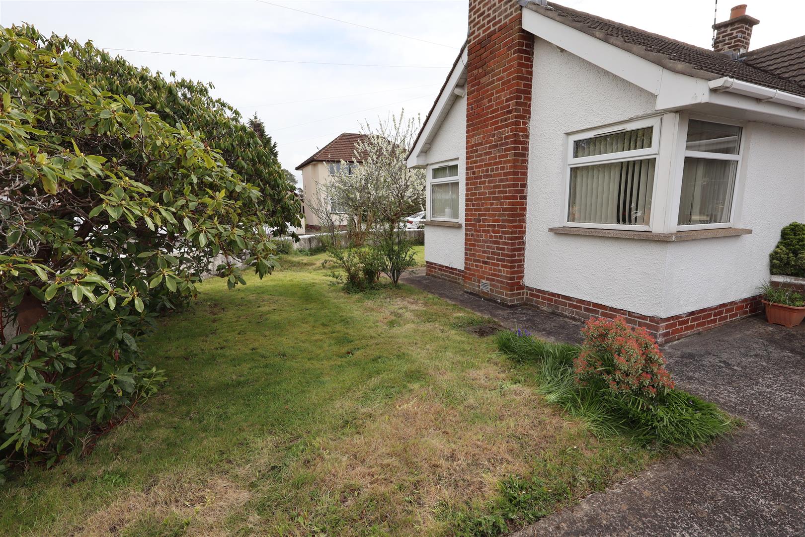 Front: Laid in lawn. Car parking space.