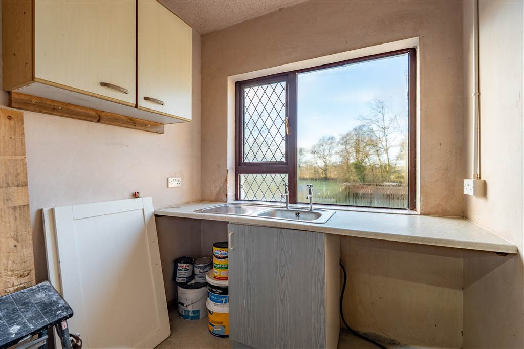 With fitted units, stainless-steel sink unit and drainer with stainless-steel hot and cold taps. Plumbed for washing machine. Space for tumble dryer.