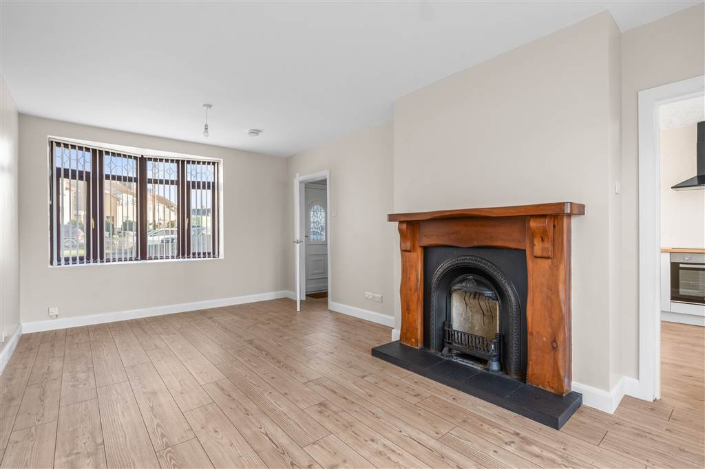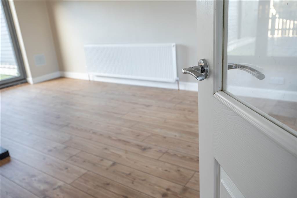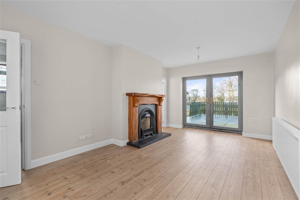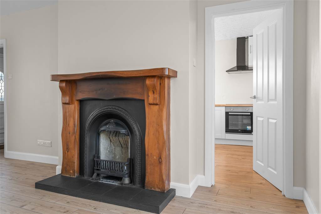 With cast-iron fireplace to tiled hearth, wooden surround and mantle. Laminated wooden flooring. PVC double doors to rear. Door to kitchen/dining room.
