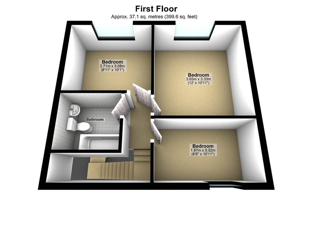 BEDROOM (3): 10' 11" X 6' 6" (3.32m X 1.97m)