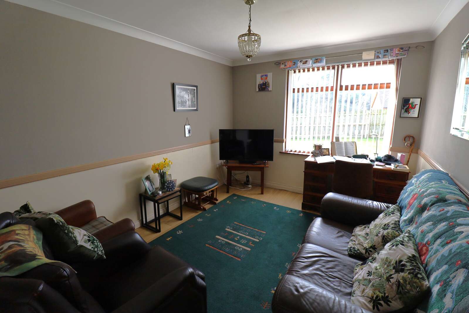 Open fire with back boiler. Rear aspect windows to garden.. Two double radiators. Double power points. Ceiling coving. Laminate flooring. Carbon monoxide detector.