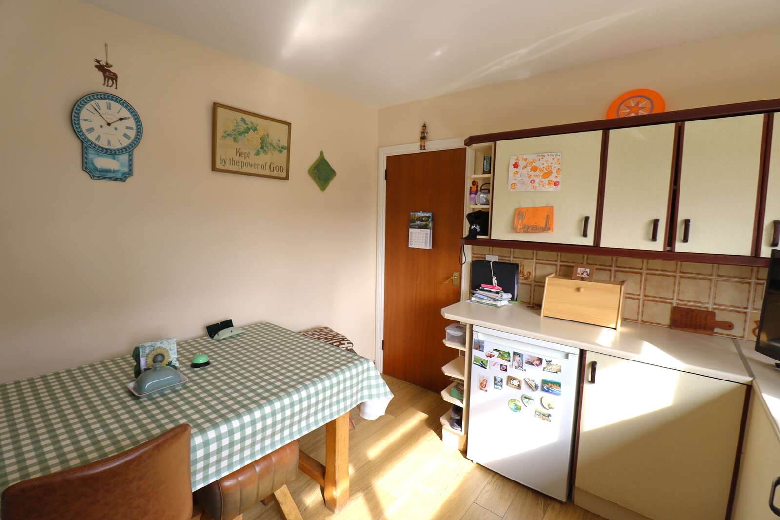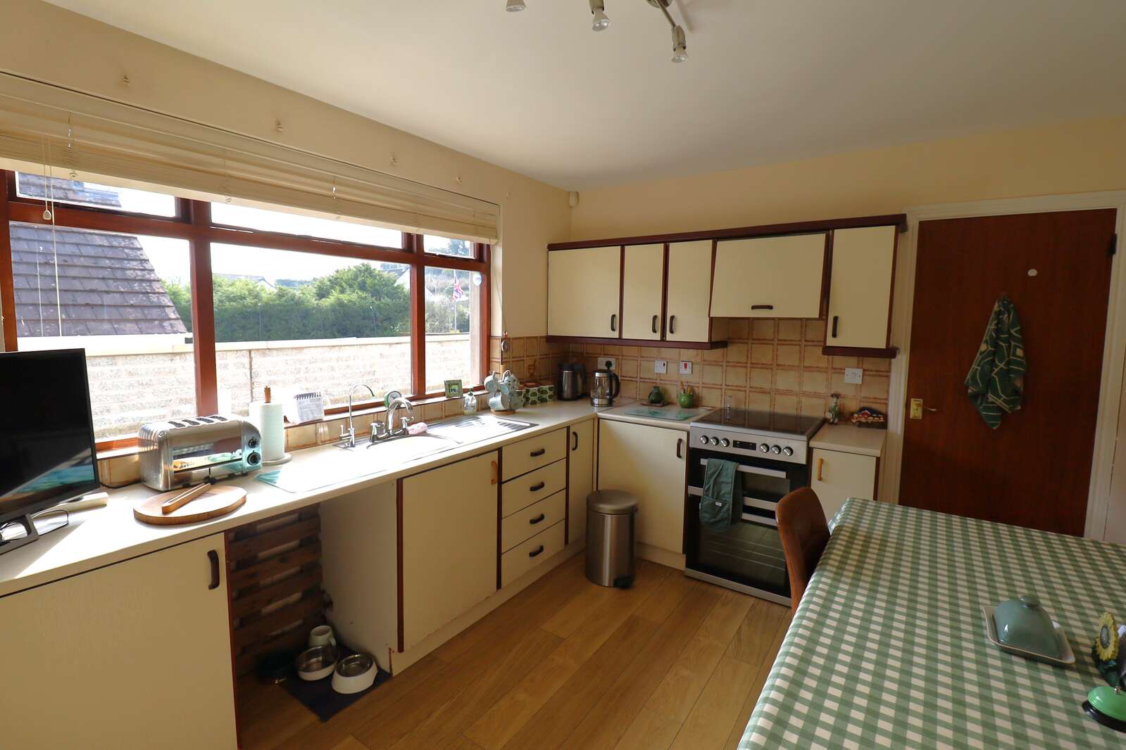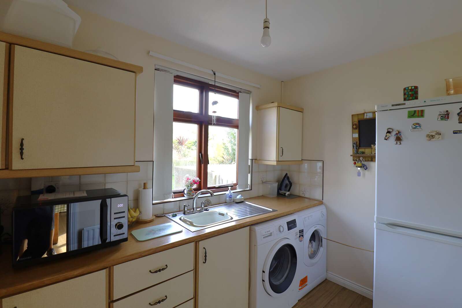 Fitted units. Stainless steel sink and drainer over window to front. Single radiator. Double power points. Plumbed for the washing machine and tumble dryer. Laminate flooring.