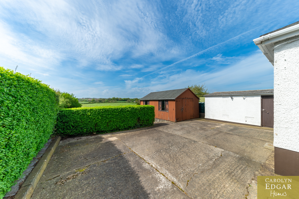 This charming two-bedroom cottage style property is situated in the popular and sought after village of Killinchy with many local amenities including Balloo House, restaurants, coffee houses and crafts shop all close at hand. Set on a large prime site with stunning uninterrupted countryside views the property offers spacious and bright accommodation throughout and will have great appeal to many buyers, especially for those looking for a semi-rural and idyllic location still close to numerous facilities. The property comprises of bright entrance hallway, lounge with feature fireplace with Baxi boiler, two double bedrooms, family bathroom with walk-in shower and large fitted kitchen with casual dining area. The property has ample gardens to the front side and rear, with large gated driveway and several outbuilding to include utility and storage room and garage with car pit. The extensive private rear gardens are laid in lawn with mature trees and shrubs and stunning uninterrupted views over the surrounding countryside, the perfect spot for any gardening enthusiasts or alternatively just sit and relax and enjoy the view