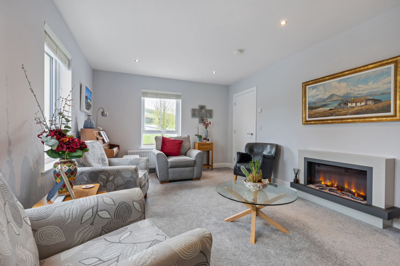 Dual aspect with countryside views, LED recessed spotlighting.