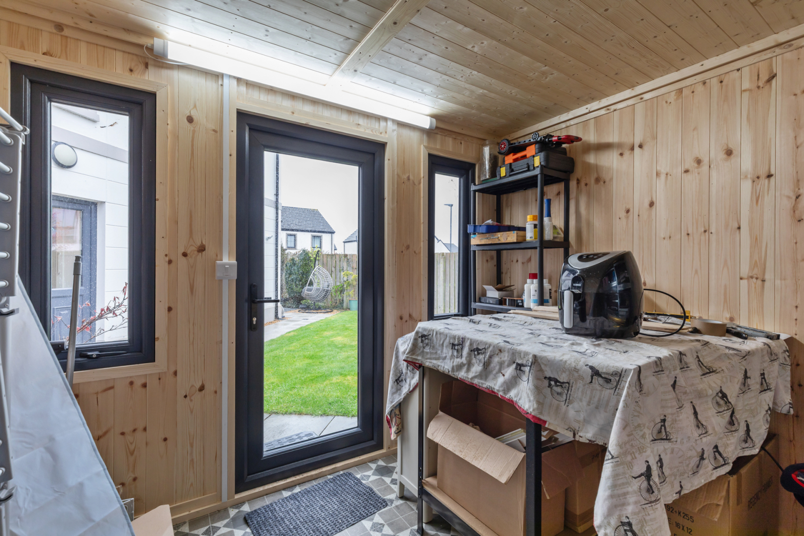 Insulated, painted, light and power, uPVC double glazed French doors to Garden. Great tarmac driveway to side of property.
