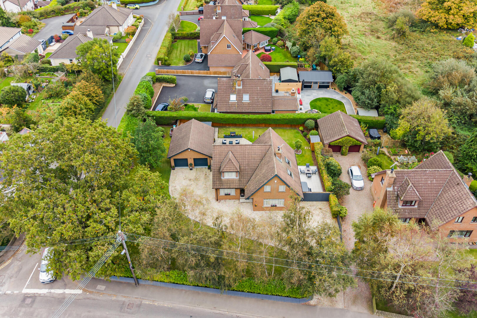 Externally, the property is surrounded by beautifully landscaped gardens. The fully enclosed rear garden offers lawn and paved patio areas, providing a safe and enjoyable space for entertaining, young children or pets alike. A large driveway provides ample off-street parking and leads to a detached double garage. To the front, a feature stone wall and natural planting add to the homes charm and kerb appeal.