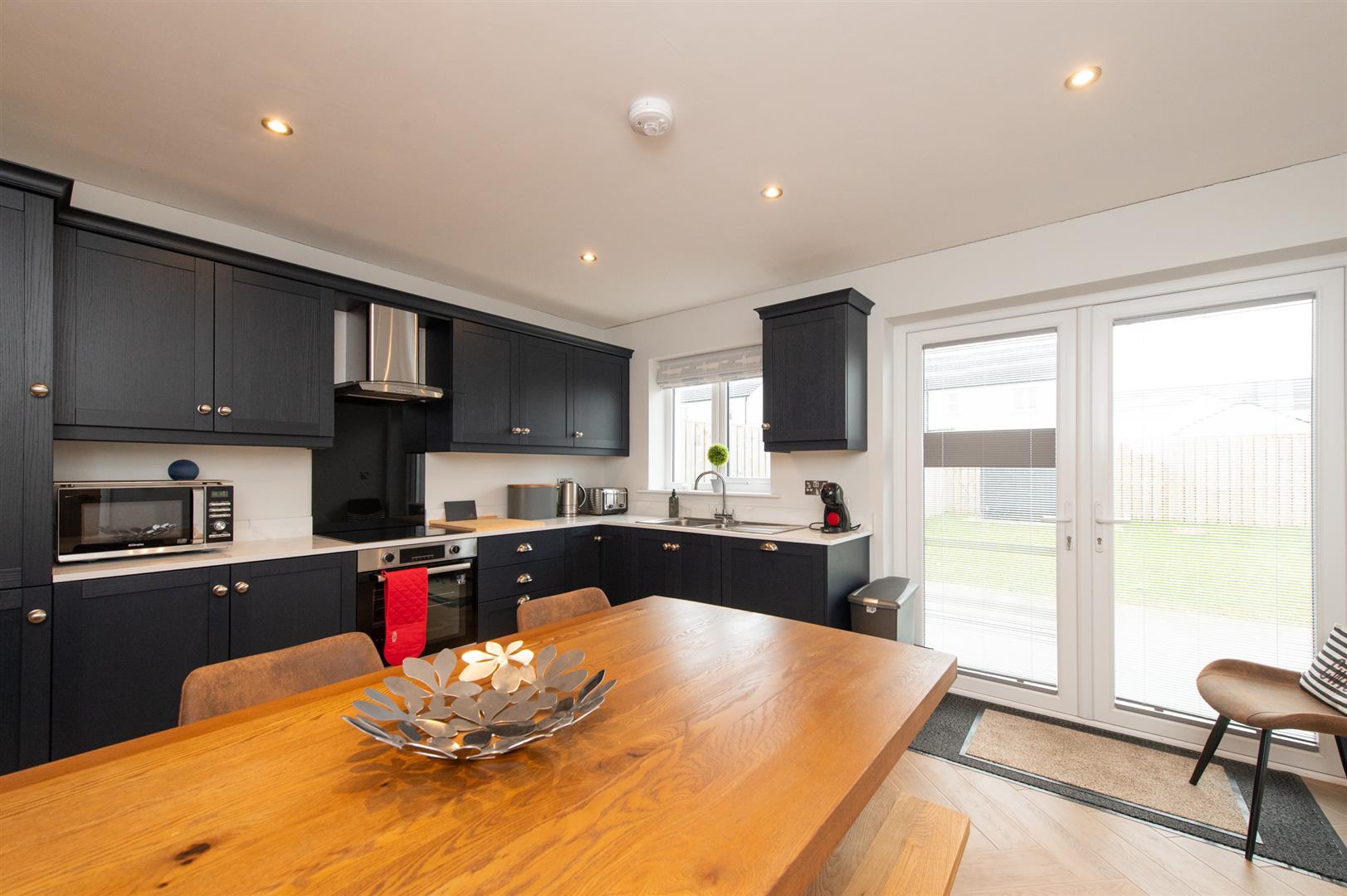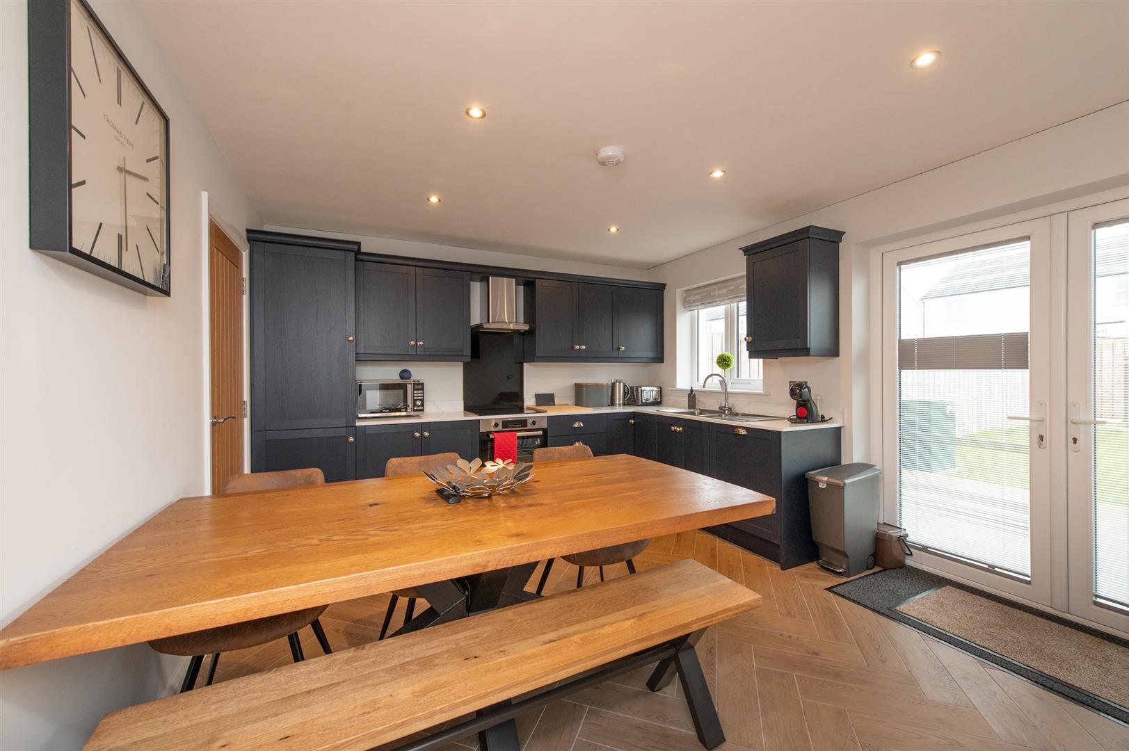 The ground floor boast generous lounge, open plan kitchen and dining room leading to utility area as well as WC, while the family bathroom and three bedrooms including principle en-suite.
