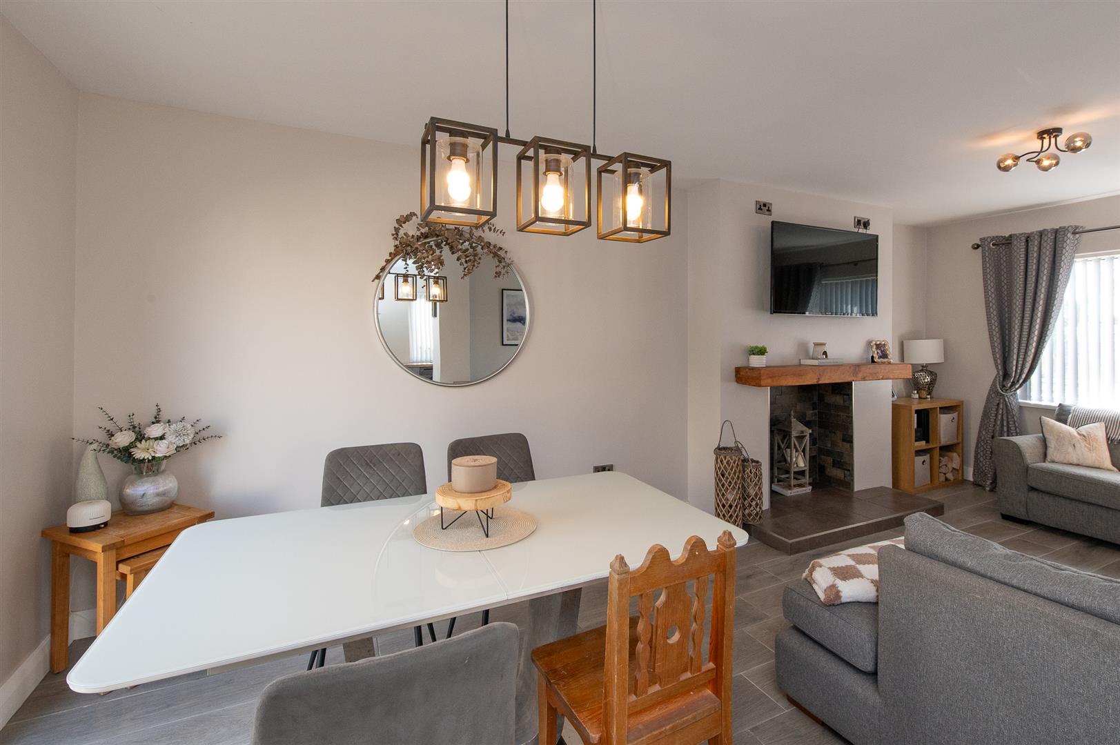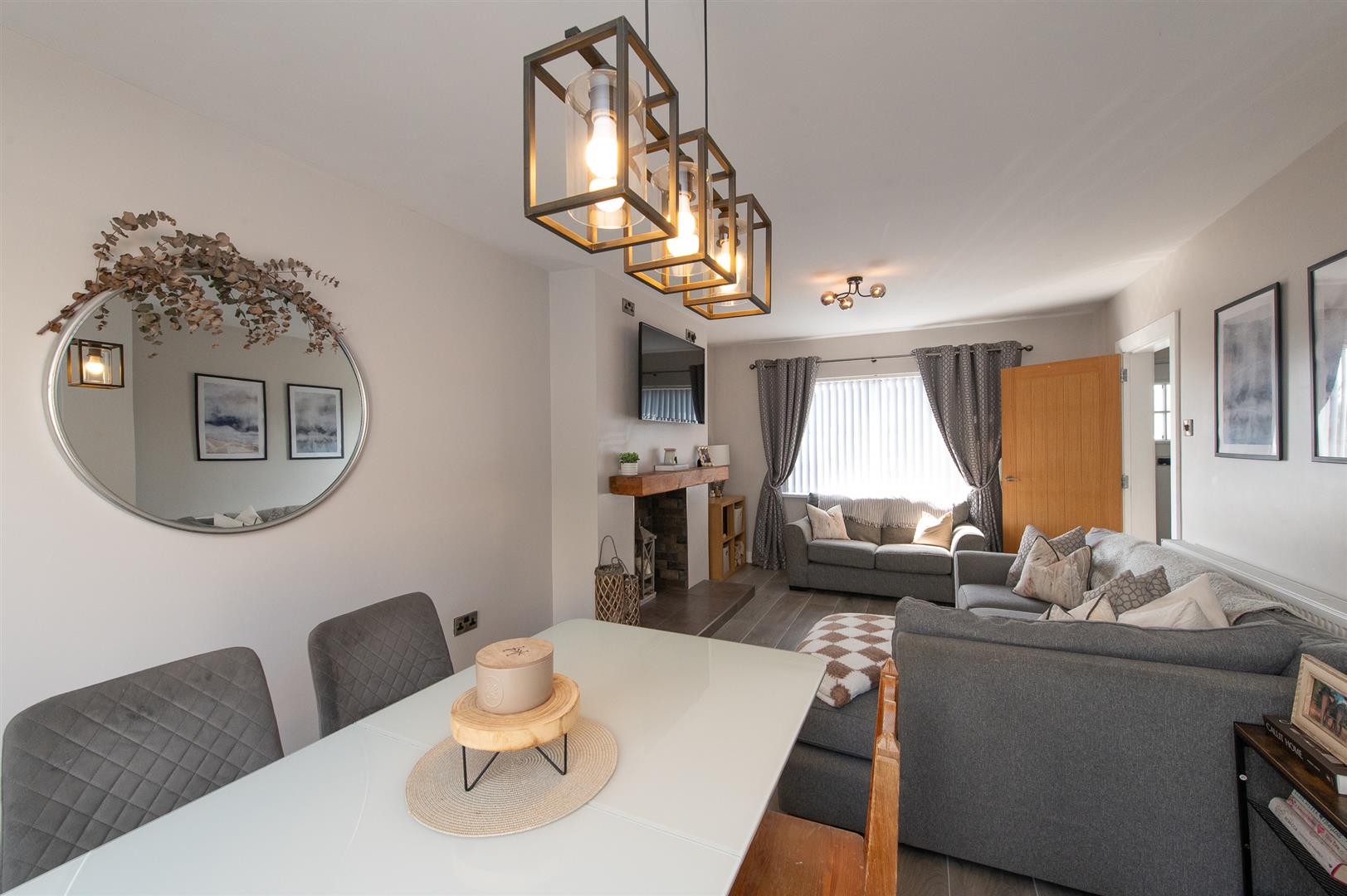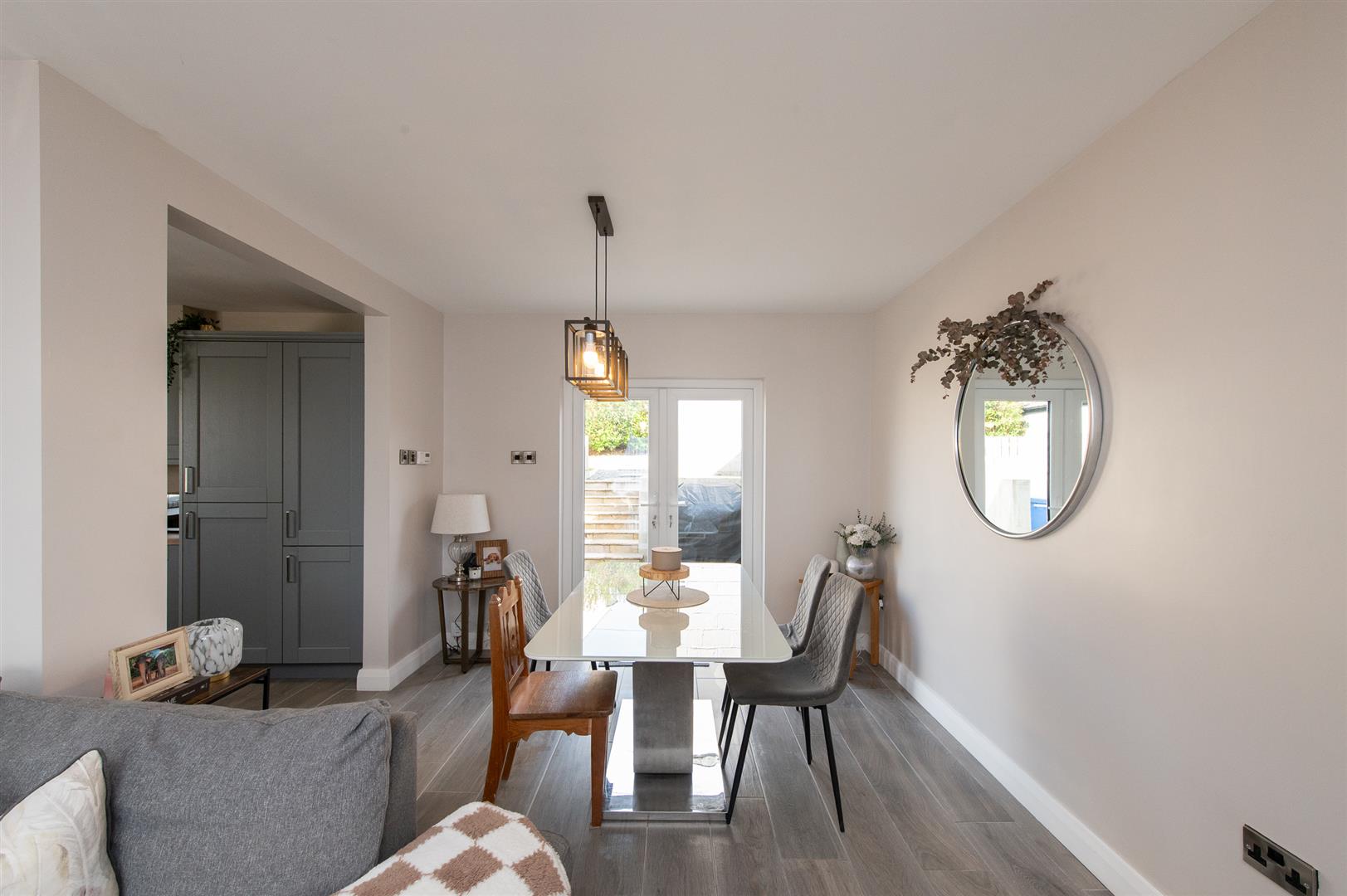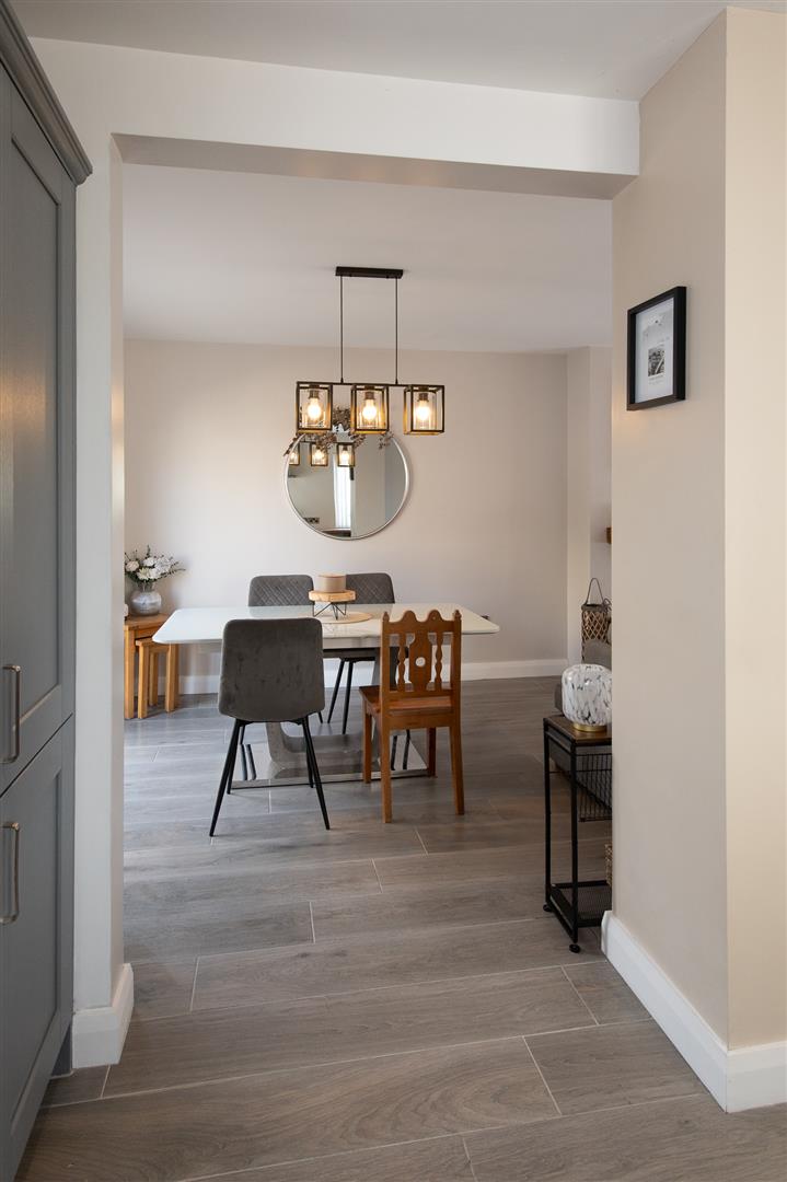 The ground floor comprises generous lounge, kitchen and dining room, while the first floor boasts three good sized bedrooms, one with built in storage, and the family bathroom.
