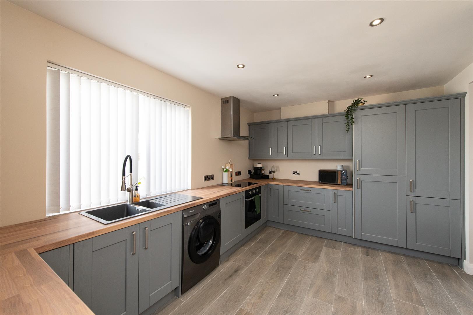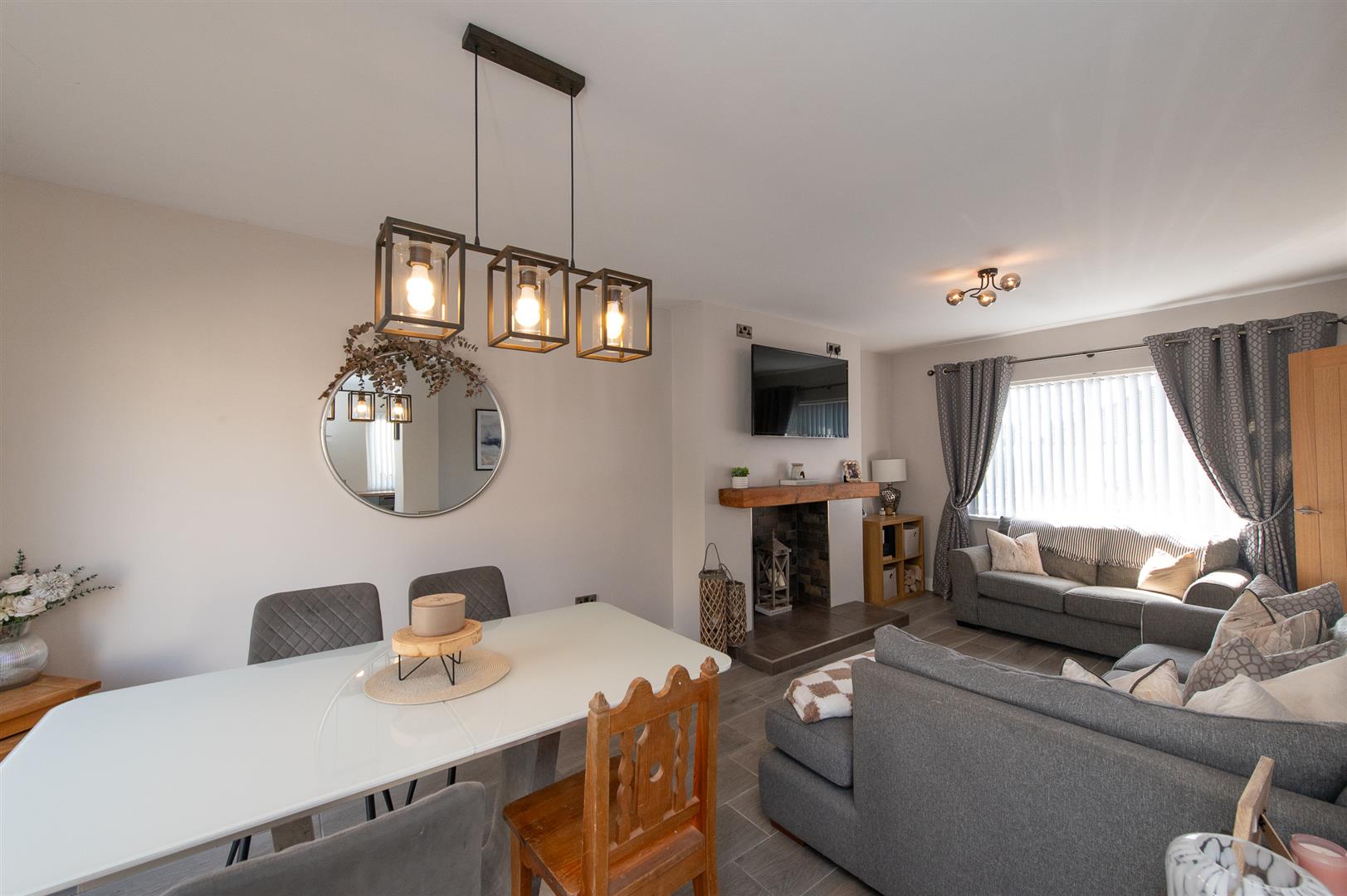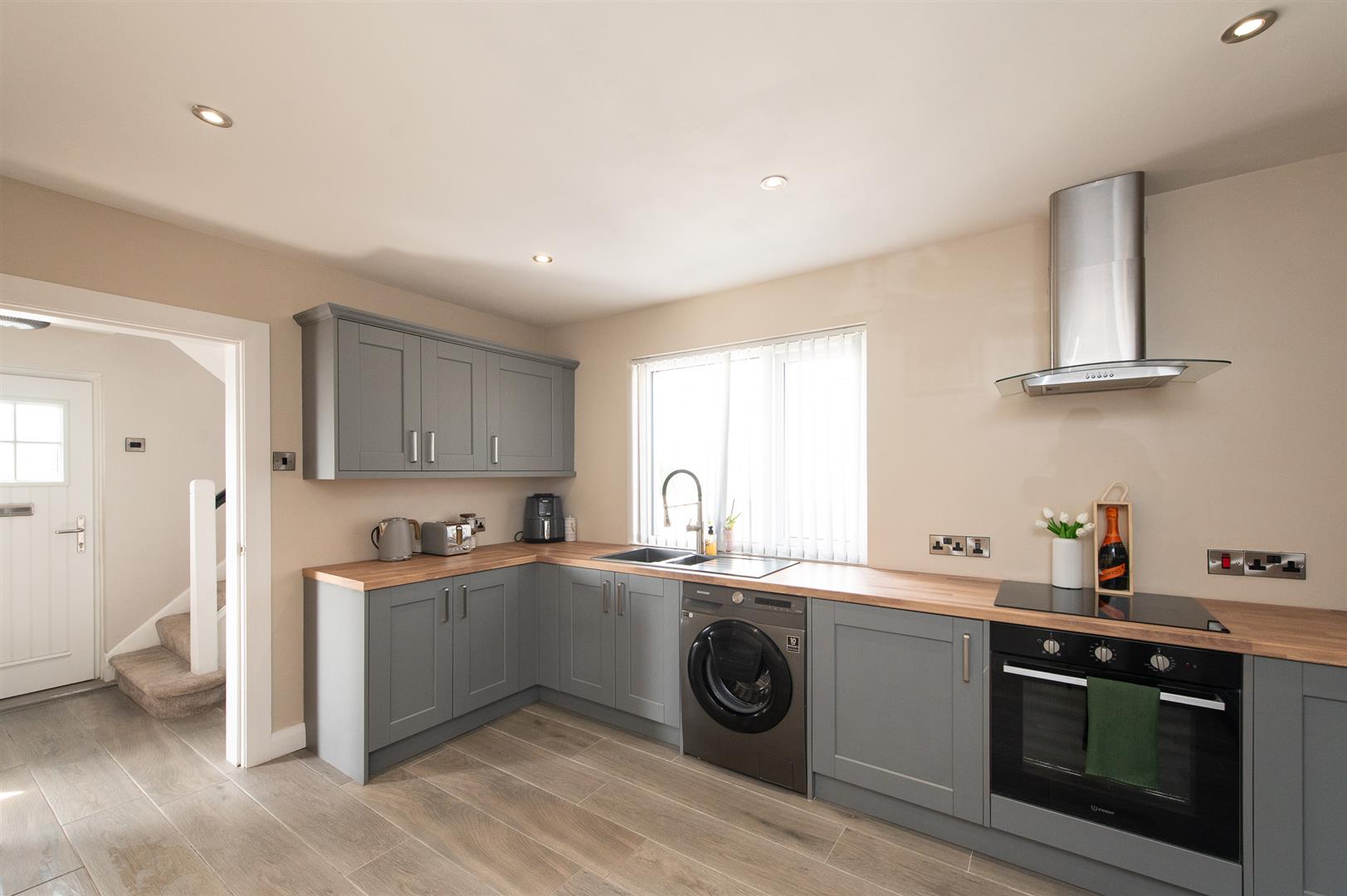 The ground floor comprises generous lounge, kitchen and dining room, while the first floor boasts three good sized bedrooms, one with built in storage, and the family bathroom.