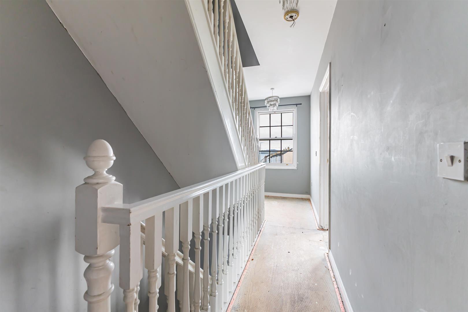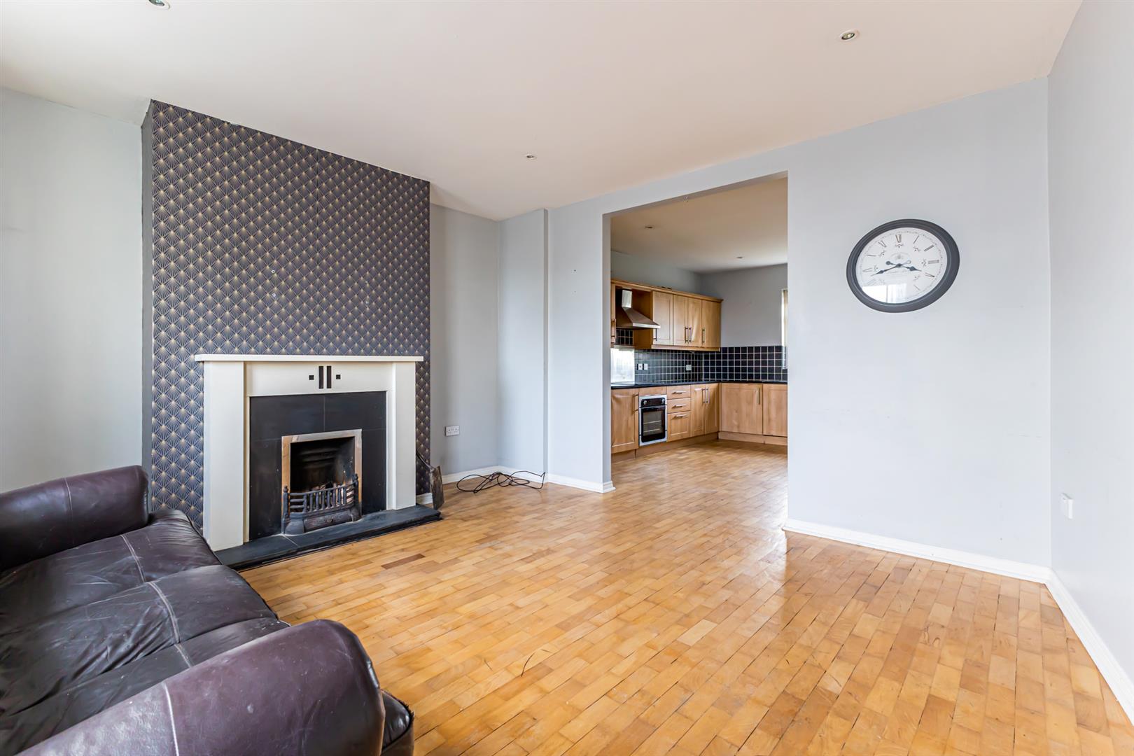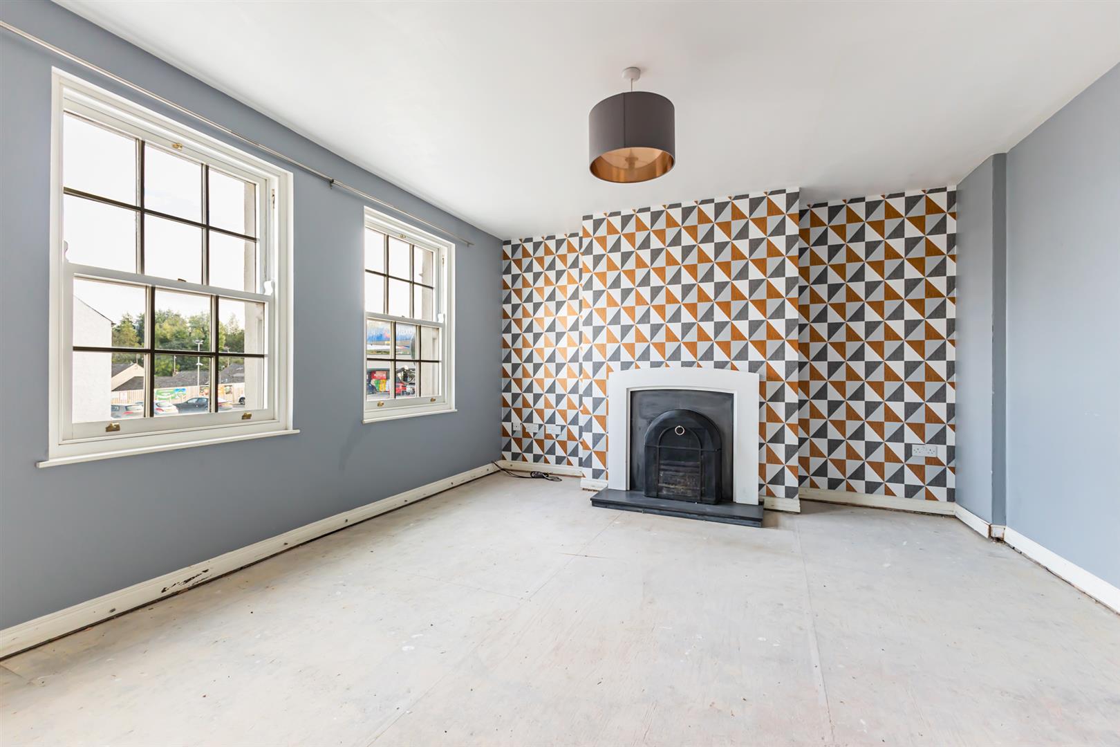 Painted wood fire surround; tiled hearth; wooden floor; recessed spotlights; open through to:-
