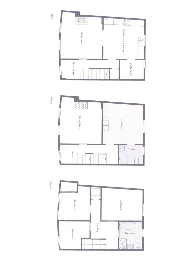 The property, fitted with oil fired central heating and double glazing, boasts a flexible layout with the ground floor comprising of a lounge, which is open through to the kitchen with casual dining and a utility room. The first floor enjoys a further living room and principal bedroom with an ensuite shower room, whilst the third floor boasts three further bedrooms and a bathroom fitted with a white suite.