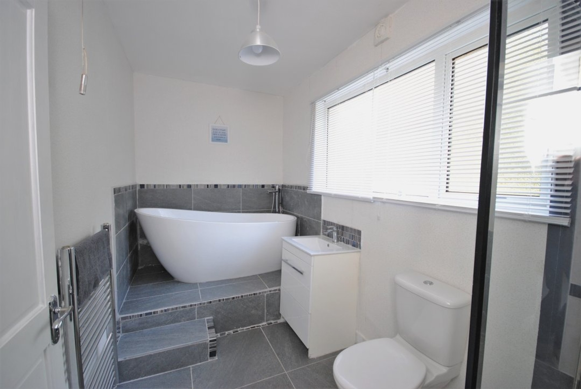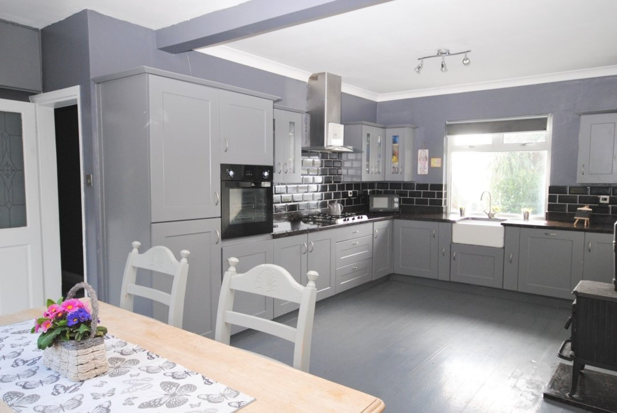 The property is in good order and has a feeling of space with well proportioned living room and smart kitchen with dining space and French doors to garden. There are three bedrooms and a recently fitted modern bathroom. The double garage has been partially converted for self contained accommodation but no building control or planning permission has been sought and therefore it is still classed as a garage.
