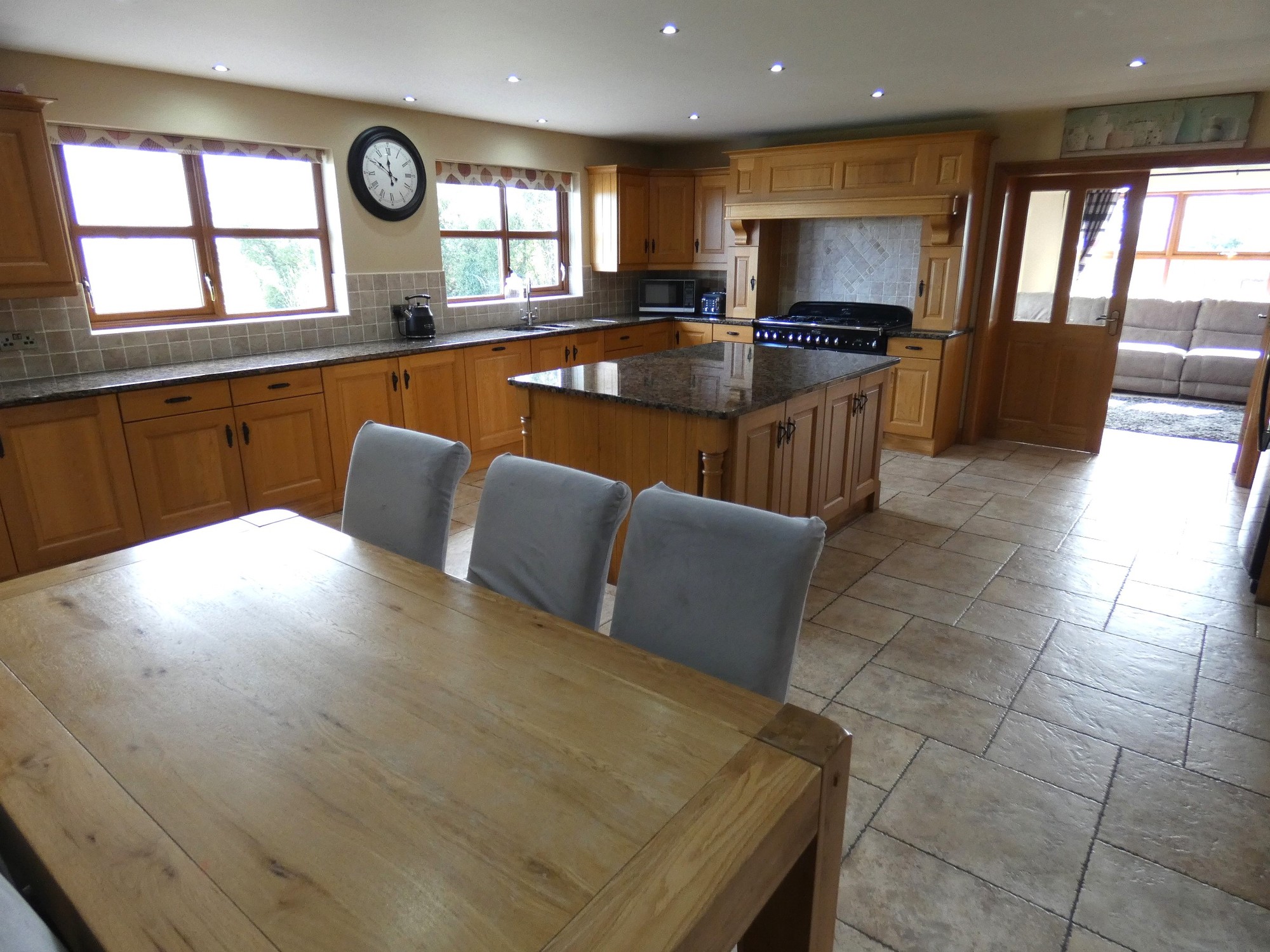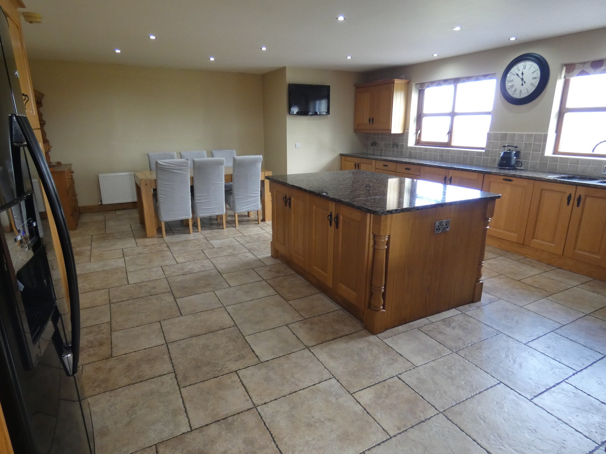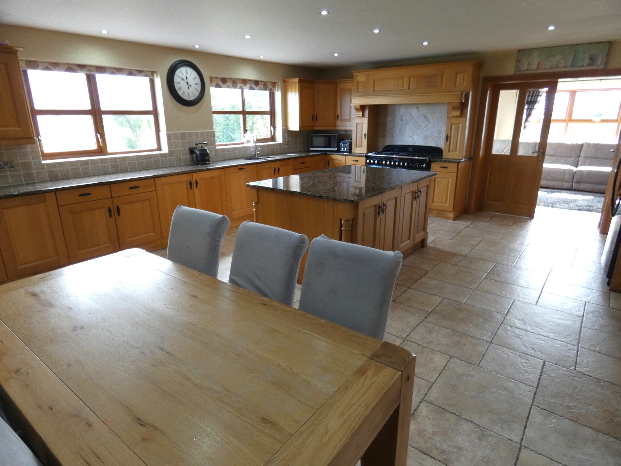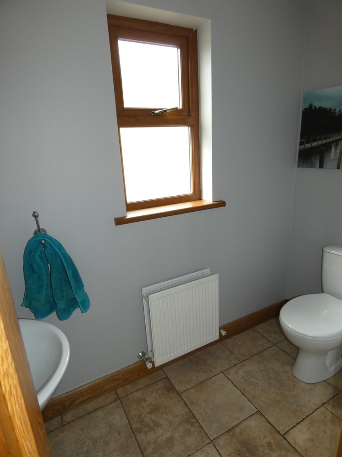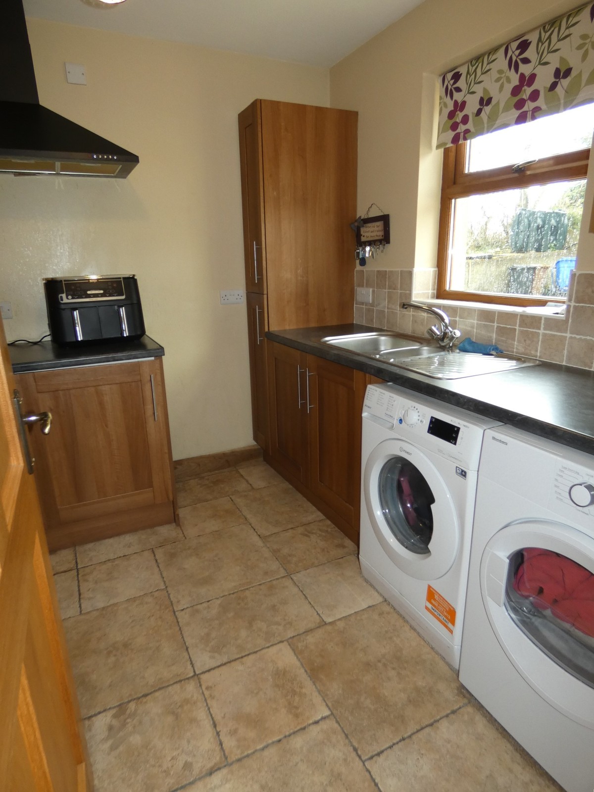 With a super range of fitted eye and low level units, bowl and a half stainless steel sink unit, tiled splashback around the same, plumbed for an automatic dishwasher, vented for a tumble dryer, fitted extractor fan, tiled floor and the fitted oil fired boiler.