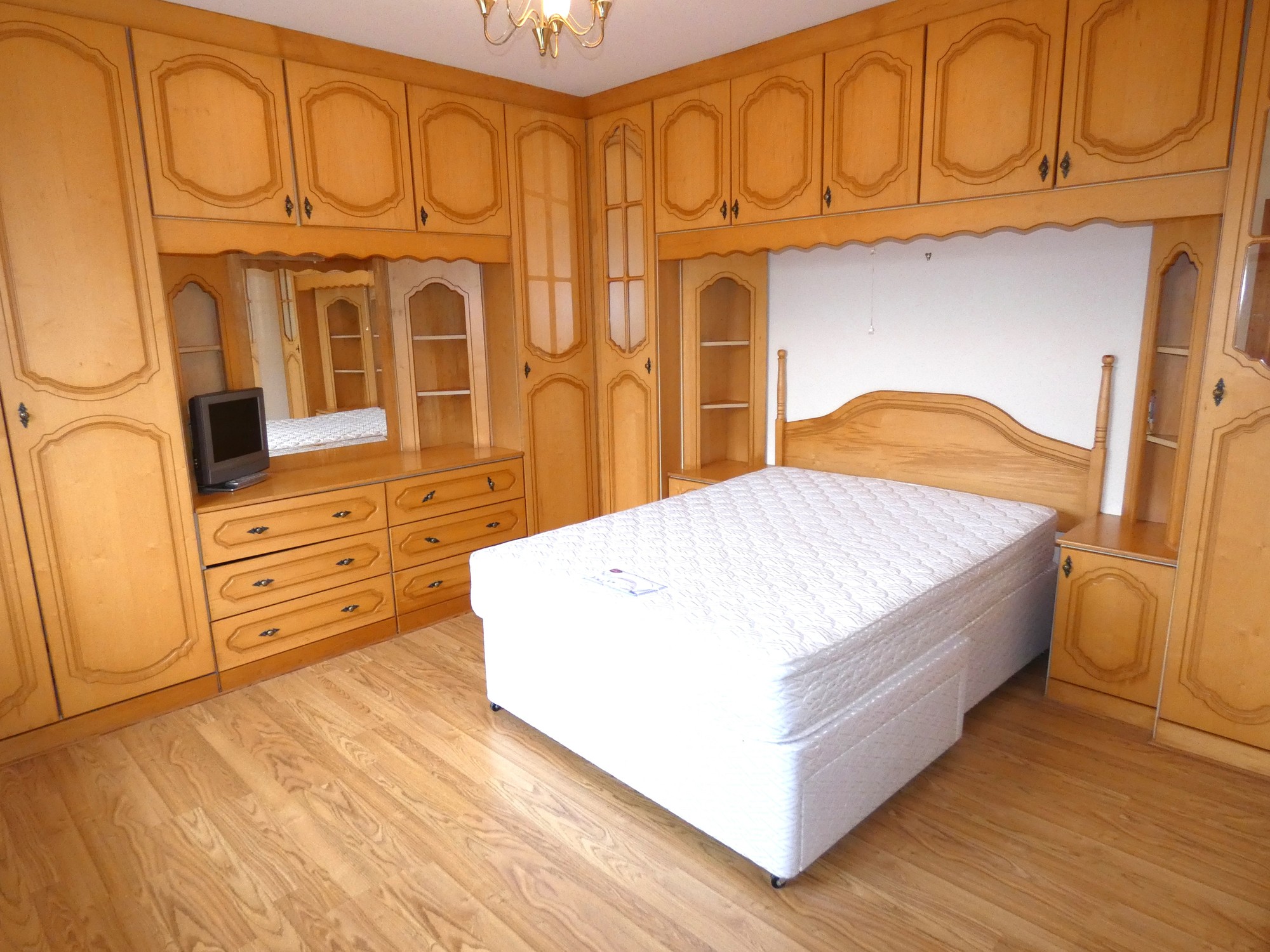 Size including the extensive range of fitted bedroom furniture including wardrobes, display shelves, a dressing area with drawers and a fitted mirror, bedside cupboards and fitted wooden flooring.