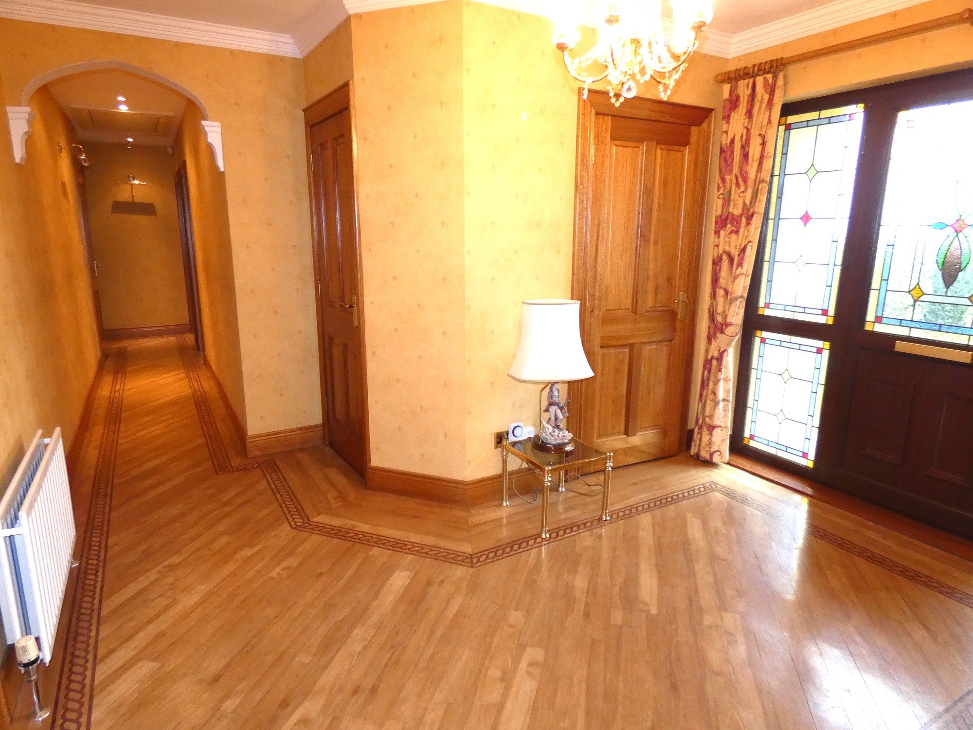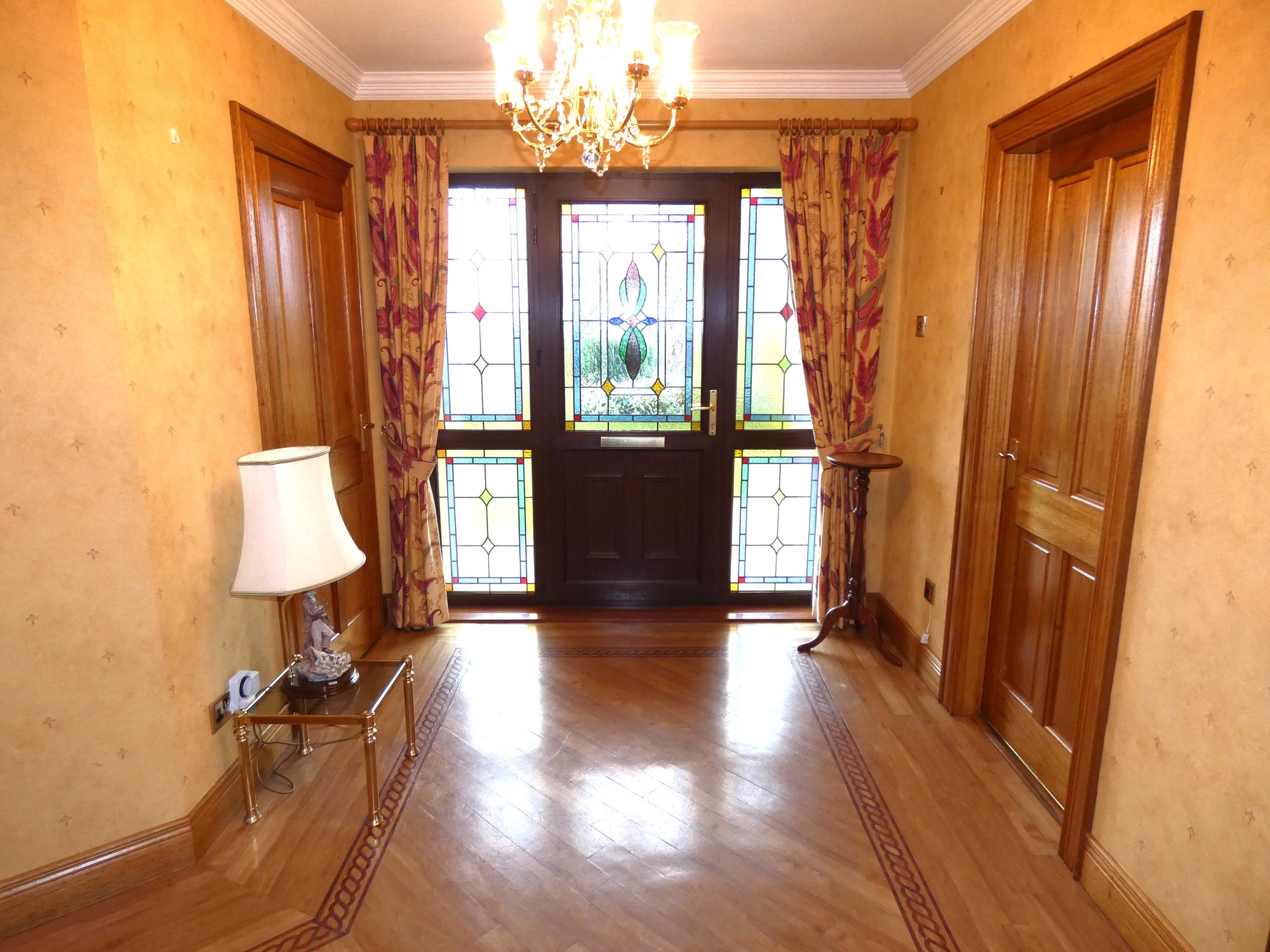 Featured Partly glazed and leaded glass front floor with matching glazed side panels, amtico type flooring, spacious walk in cloakroom, a useful additional storage cupboard, ceiling coving, recessed ceiling spotlights, points for picture lights, a walk in airing cupboard and beam vacuum points.