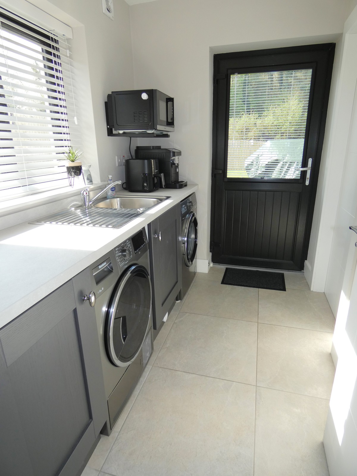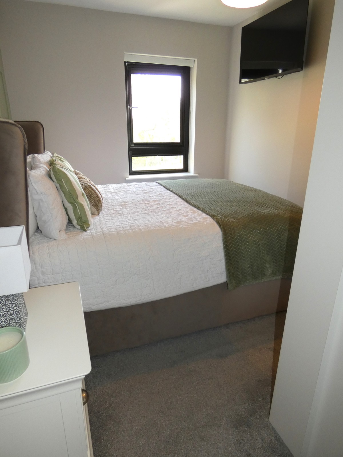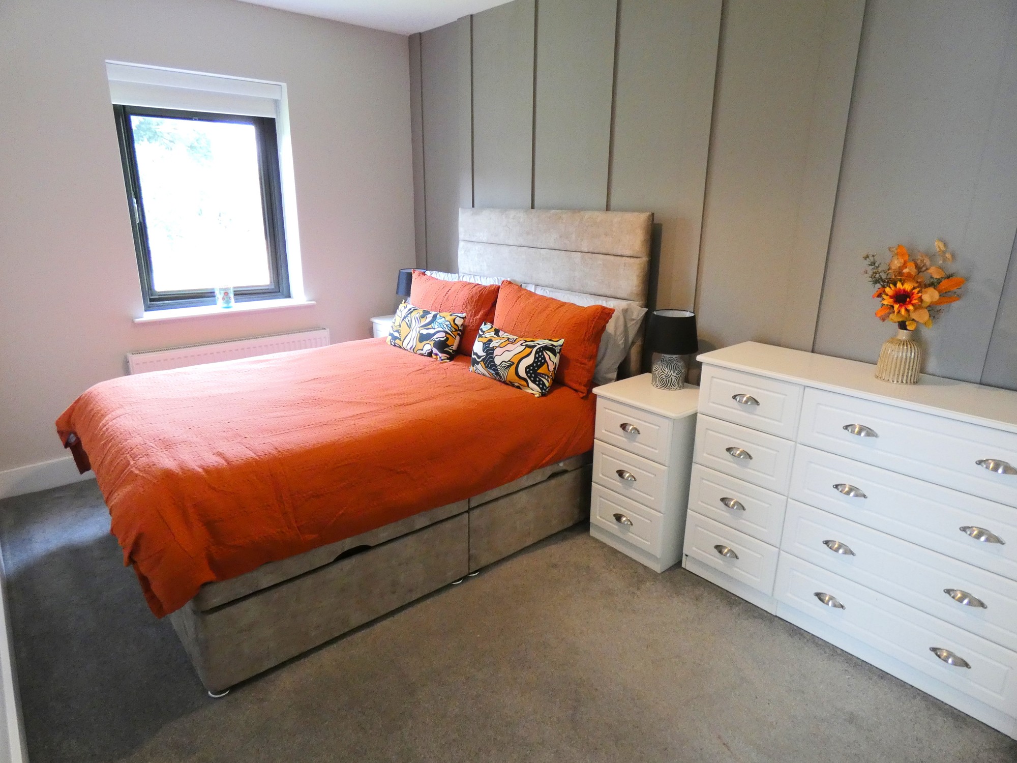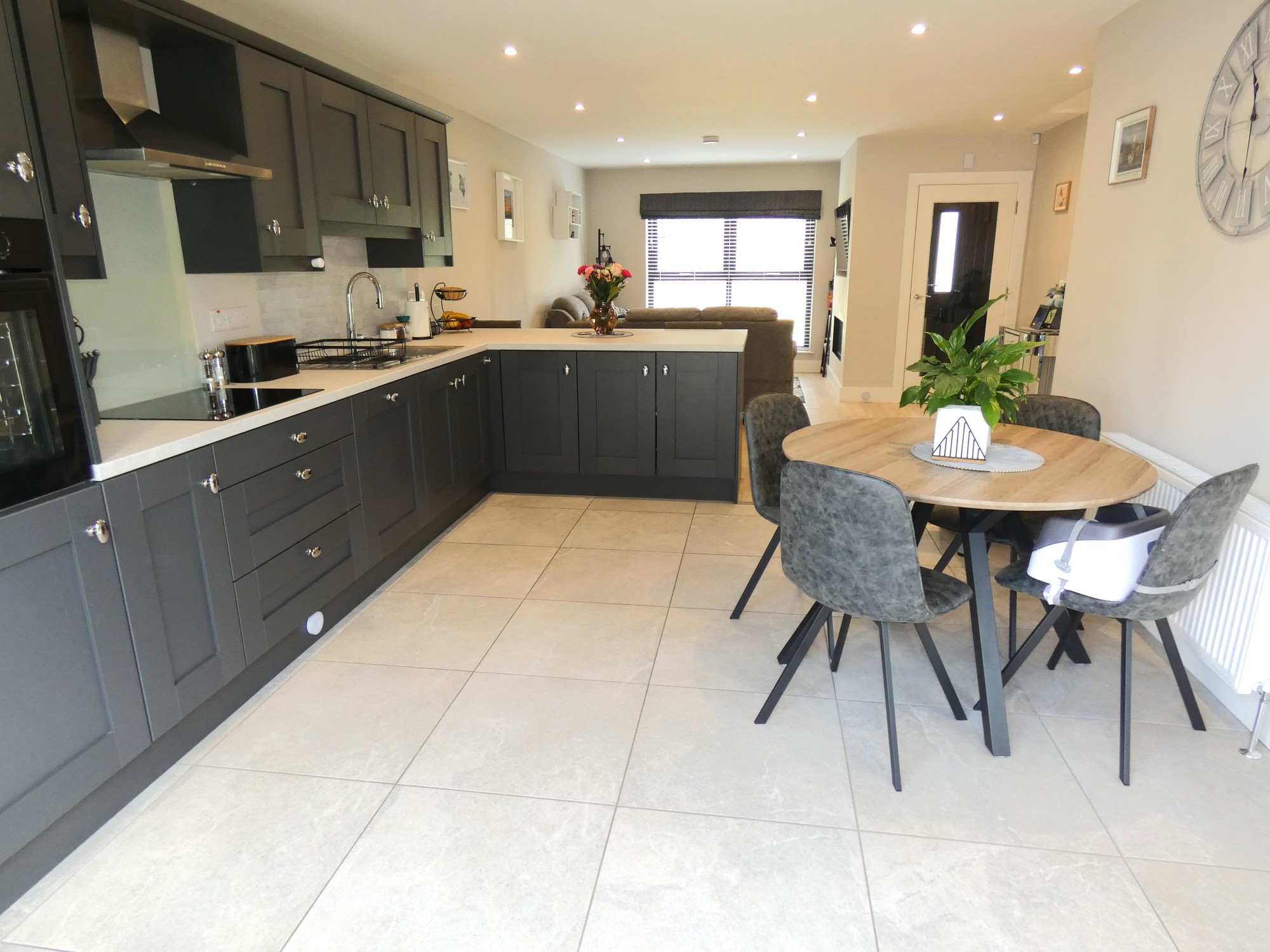 Millbrook Gardens itself is a top quality development with number 14 benefitting from an attractive and High Quality Turnkey finish (significantly upgraded) including the feature kitchen units in the double aspect kitchen/dinette/living room which overlooks the rear garden and accessed via a feature glazed door / side panel. There’s also a contemporary media wall in the living room area whilst the same enjoys that open aspect to the front; with a spacious ground floor cloakroom and a fitted utility room (matching the kitchen) completing the ground floor accommodation.