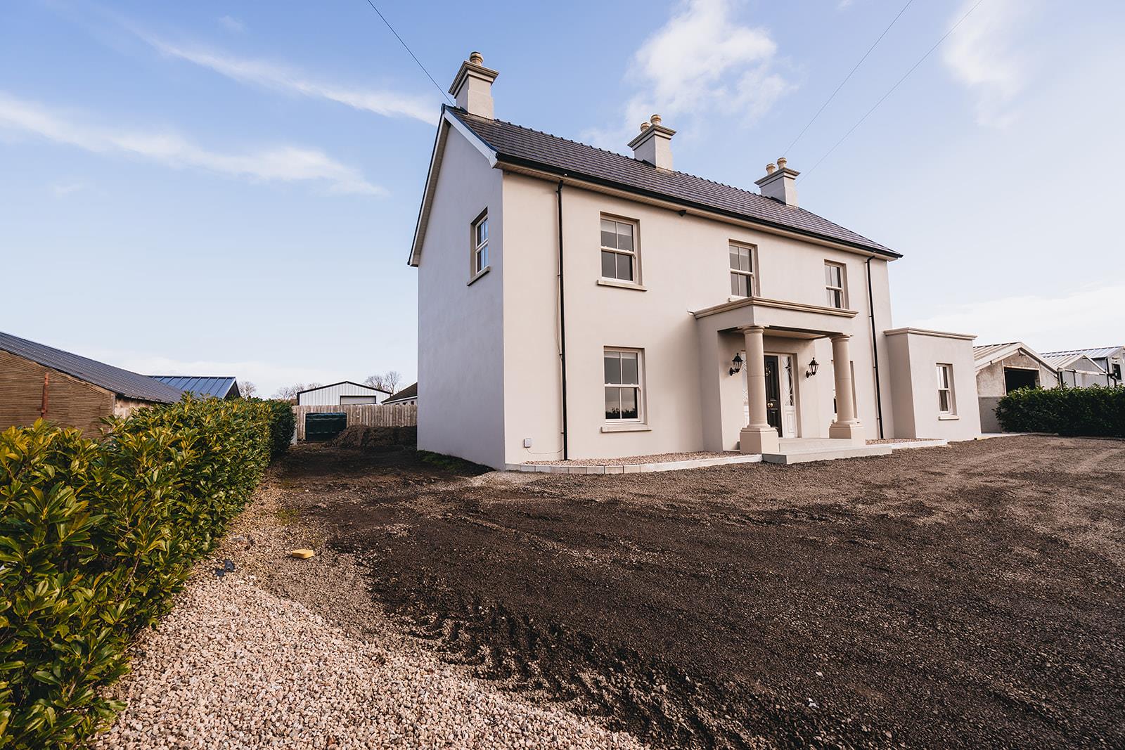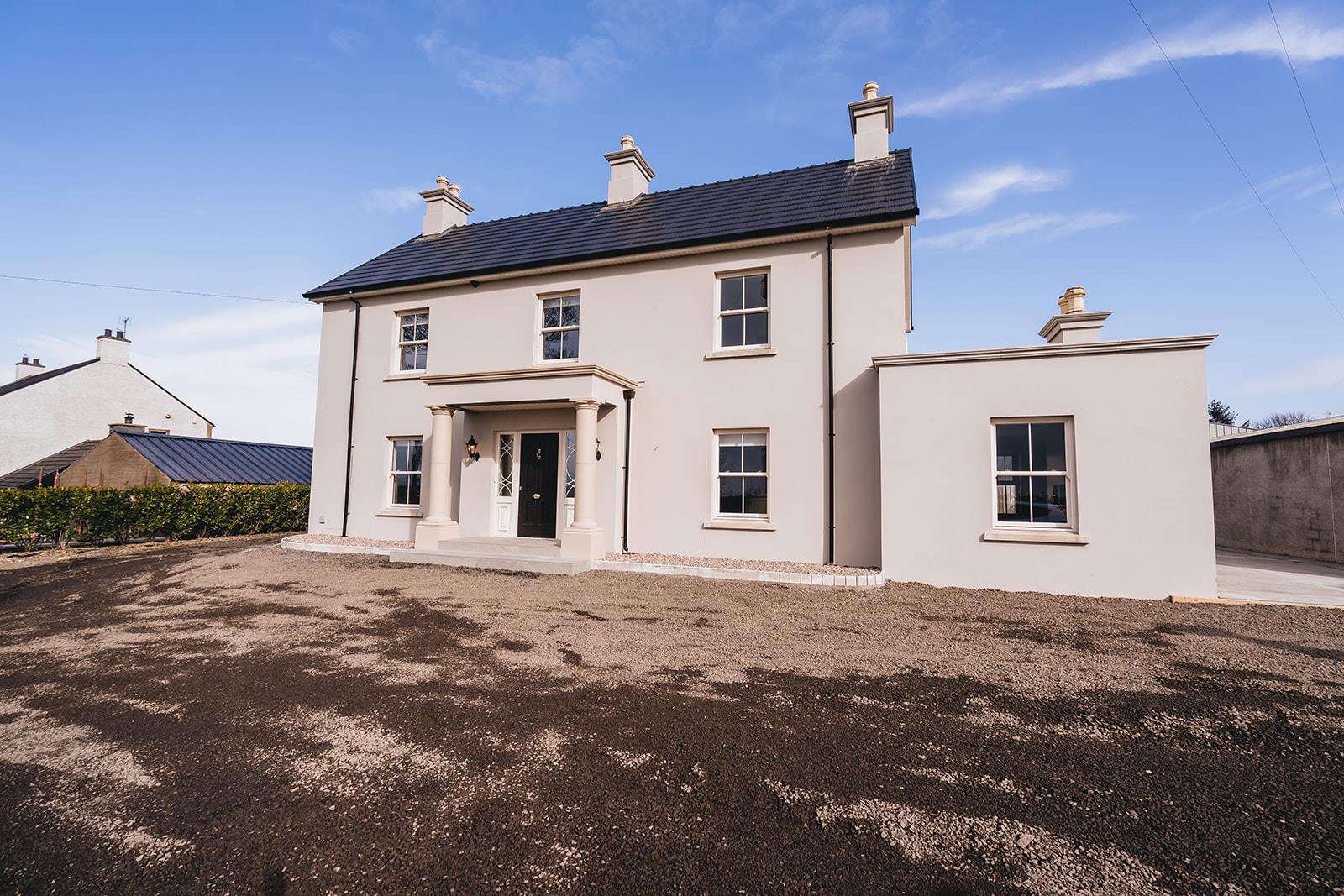 Located just off the Portna Road, just outside village of Rasharkin, this exceptional detached house, built in 2020, offers a perfect blend of modern living and comfort. With five spacious bedrooms, this property is ideal for families seeking ample space and privacy. The house boasts two inviting reception rooms, perfect for entertaining guests or enjoying quiet evenings with loved ones.