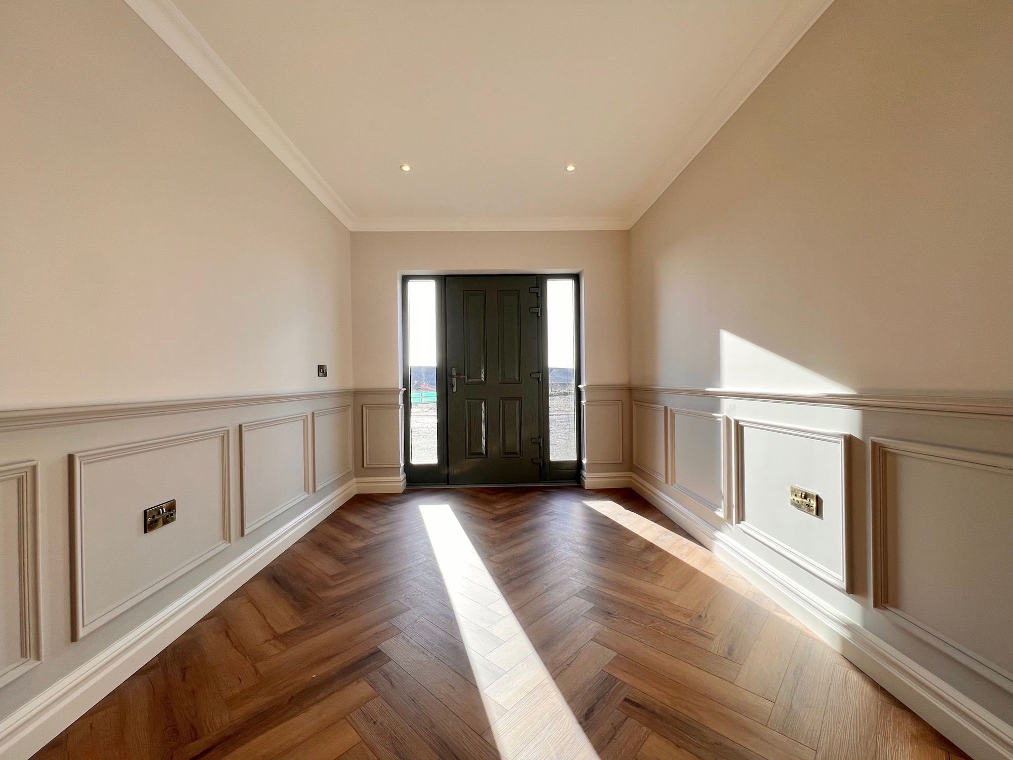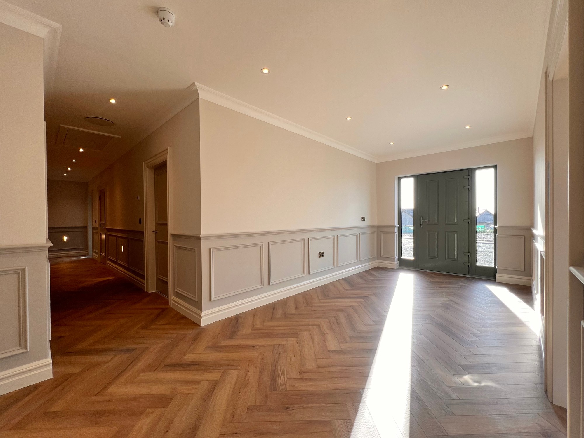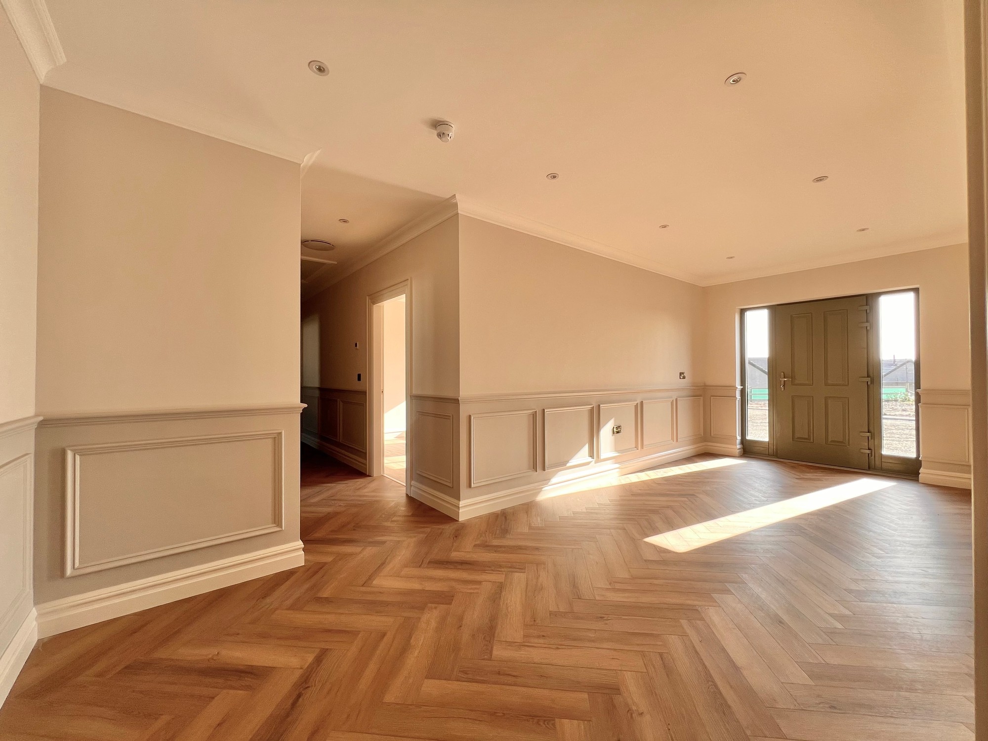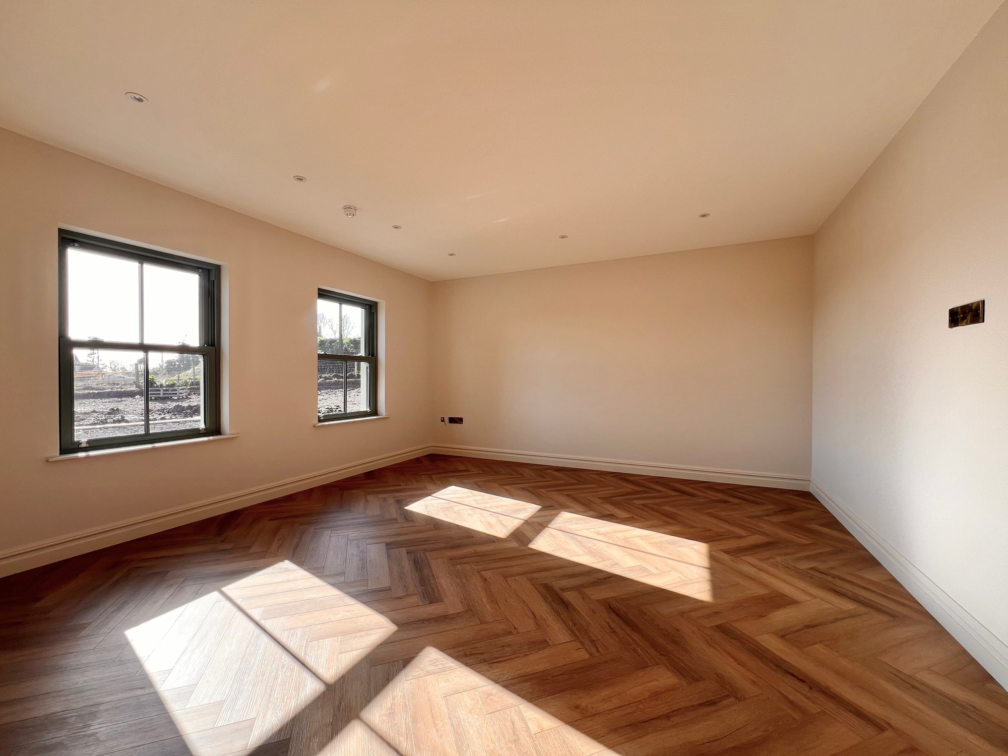 Internally, this fine property has been finished to a high specification throughout, with herringbone style floor in the hallway, tiling to kitchen, sun lounge and bathrooms and a beautiful fitted kitchen with all modern appliances. The bathroom and en-suite have been furnished with white sanitary ware and stylish tiling.