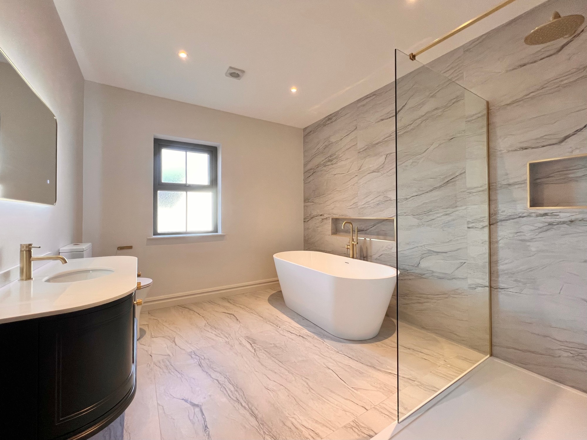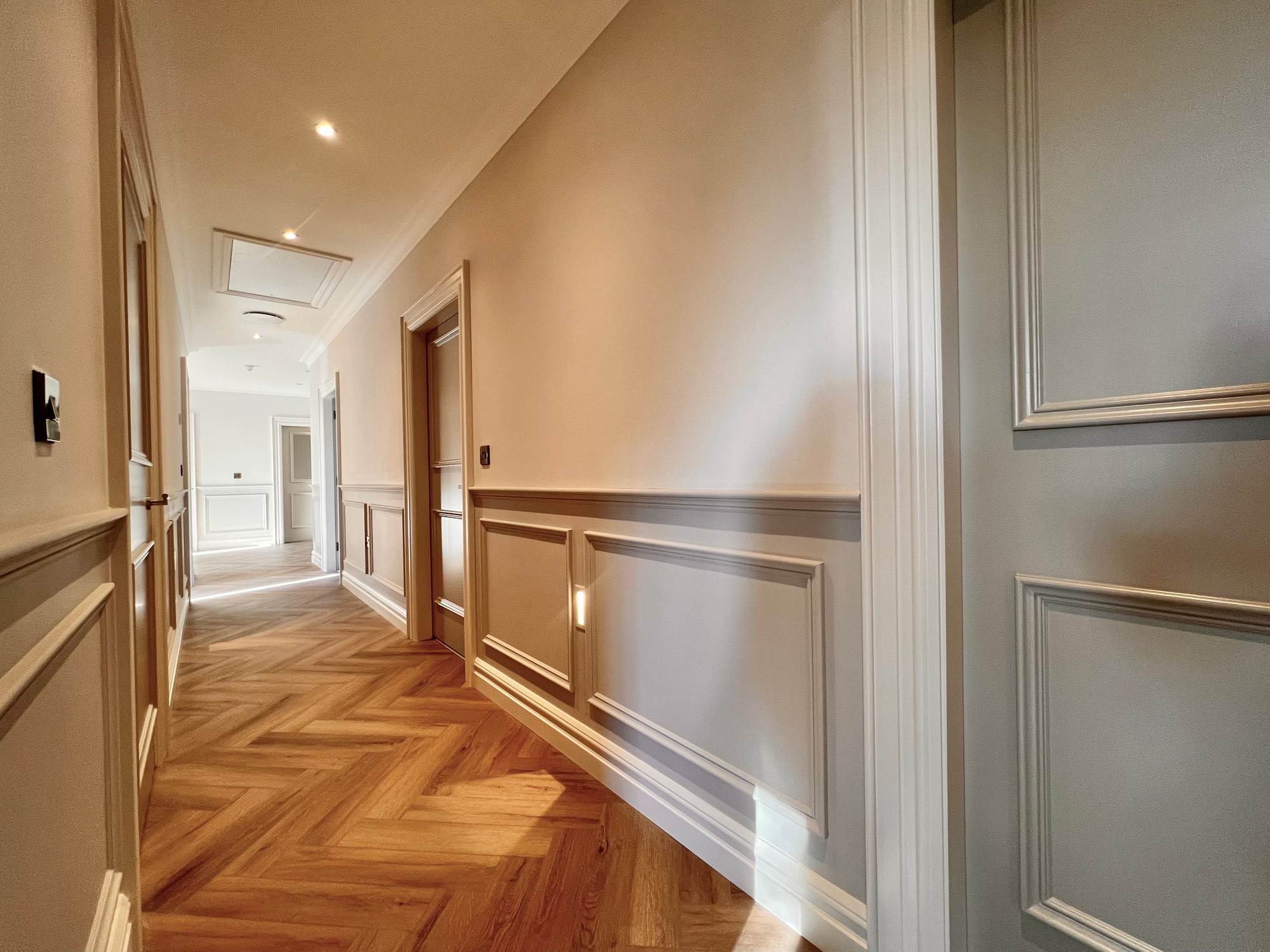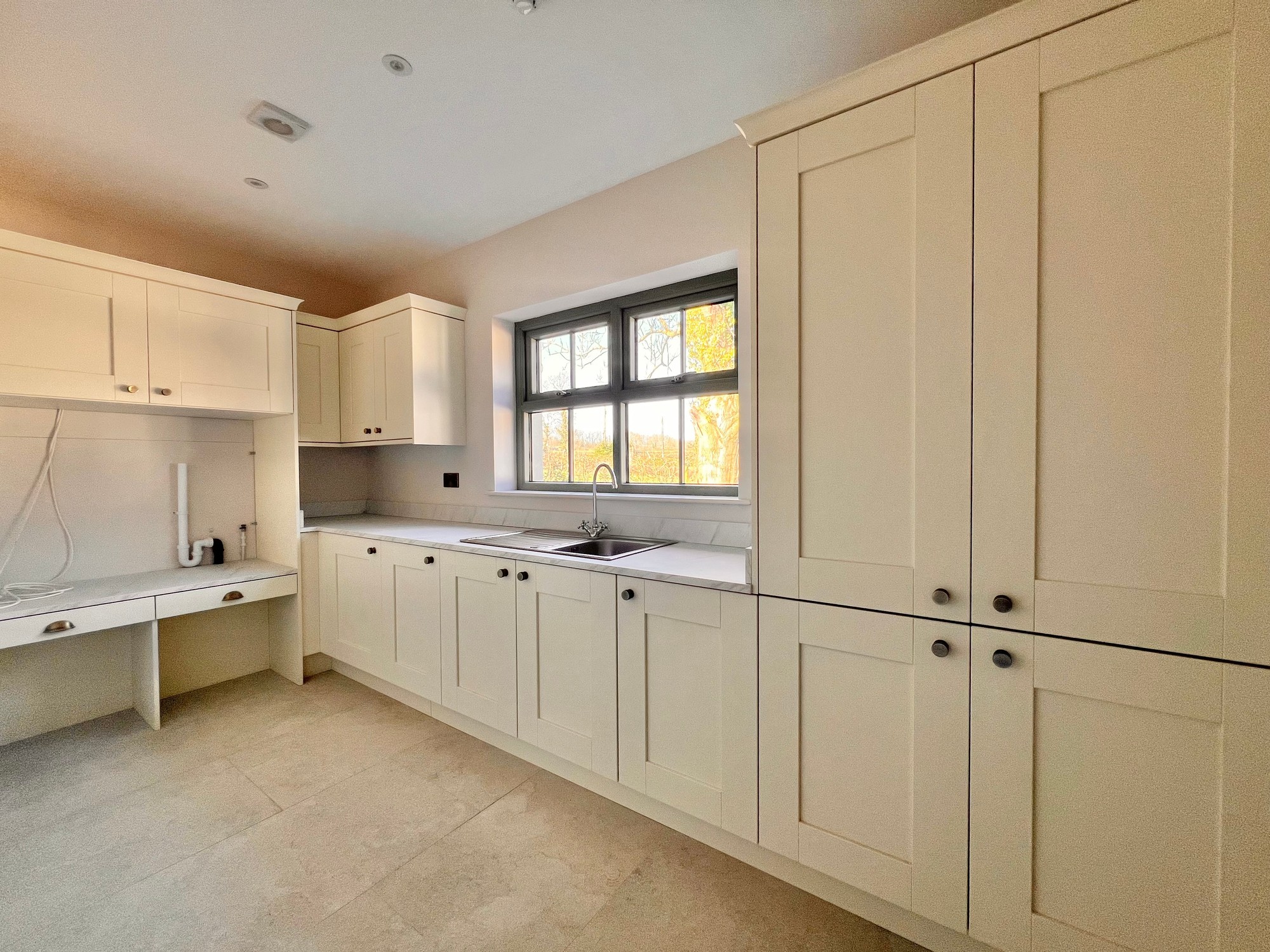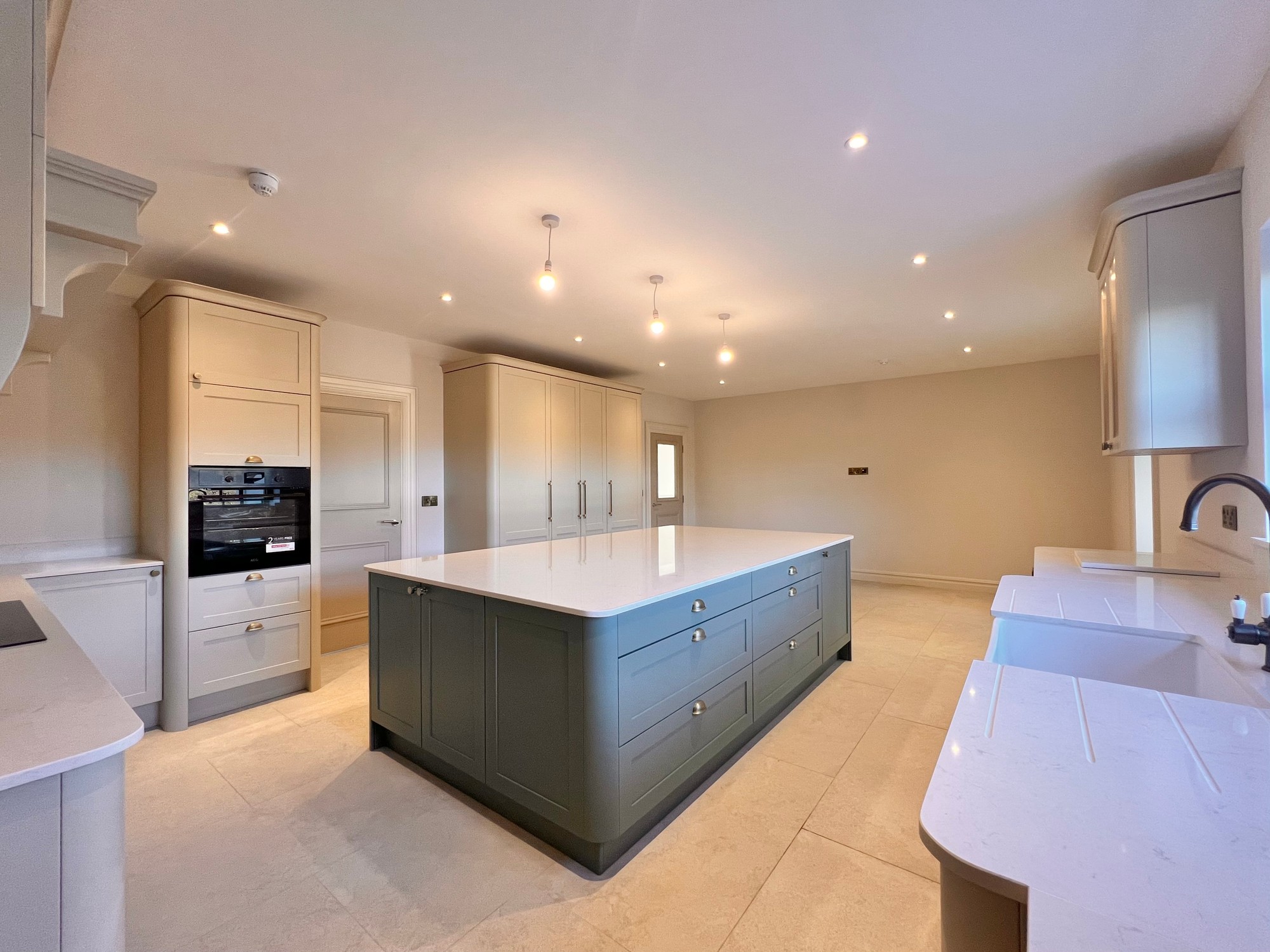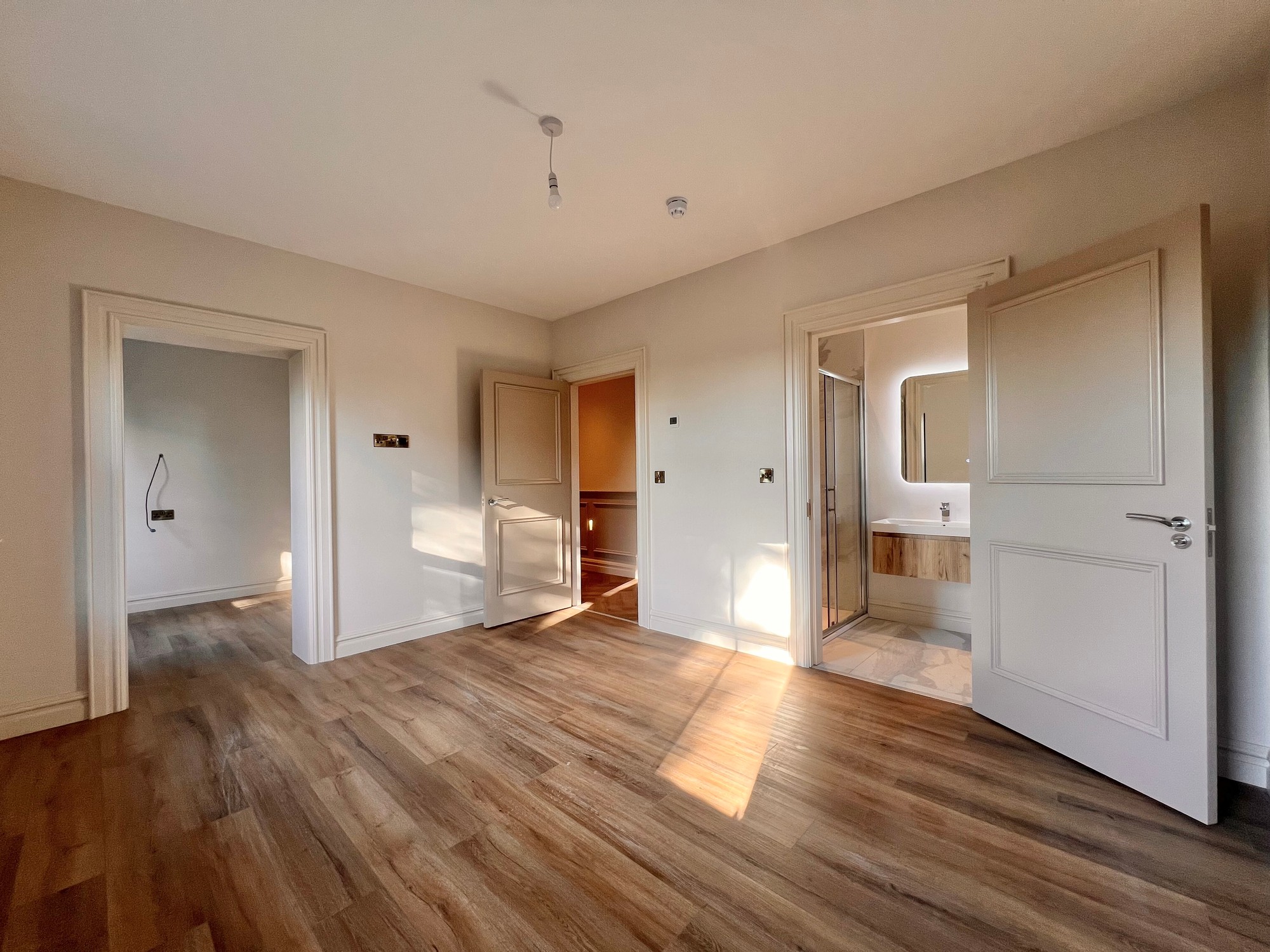 Internally, this fine property has been finished to a high specification throughout, with herringbone style floor in the hallway, tiling to kitchen, sun lounge and bathrooms and a beautiful fitted kitchen with all modern appliances. The bathroom and en-suite have been furnished with white sanitary ware and stylish tiling.