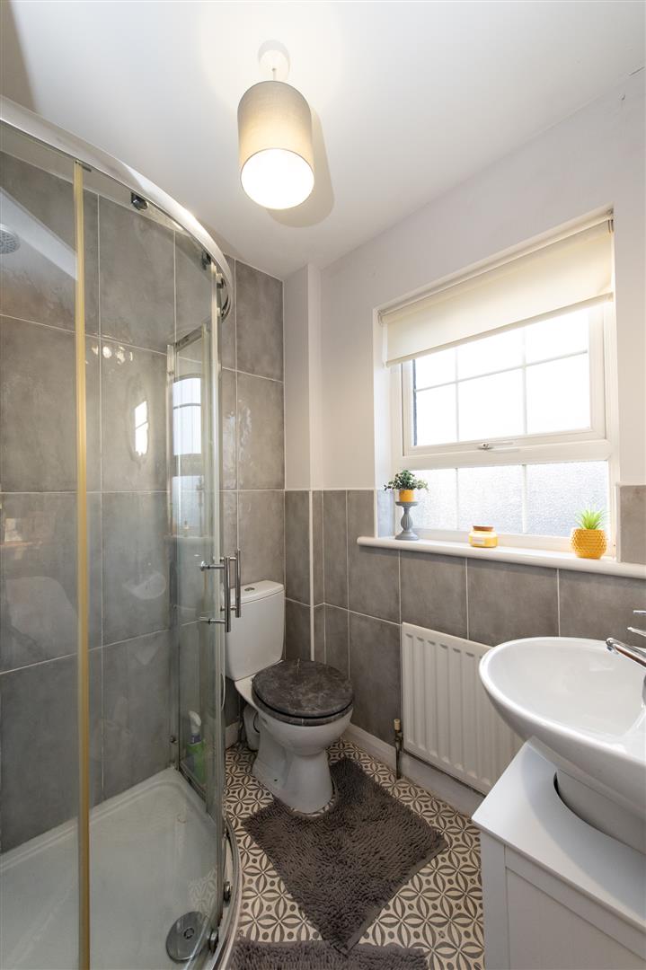 The stairs & landing are carpeted with the master bedroom having dual aspect windows and modern wall panelling along with ensuite shower room comprising tiled walls and vinyl flooring. Bedroom two and three both with rear view aspect, both are carpeted. The family bathroom is partially tiled and has a three piece suite and a stand alone shower also.