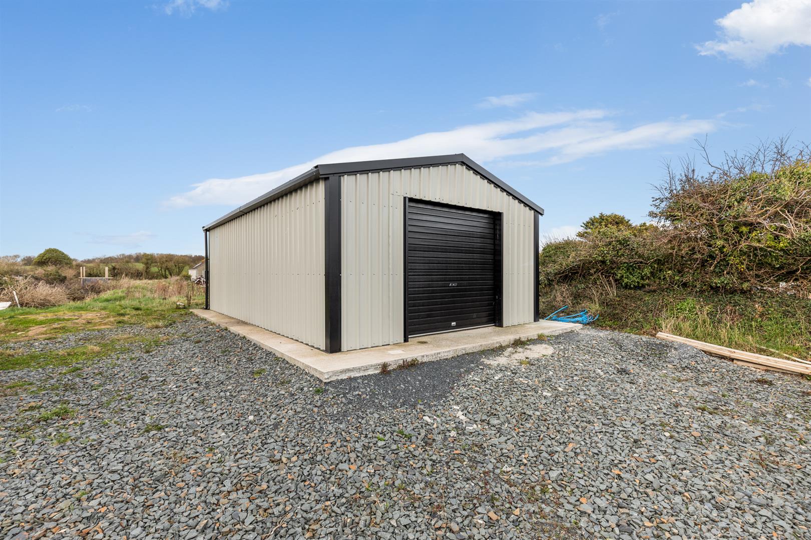 Externally, the property sits on circa 0.5 acre. To the front and side there is a stone driveway providing ample off-street parking alongside areas in lawn and mature planting. The rear garden is laid in lawn with mature hedging providing privacy, along with an additional stone area suitable for further parking or storage. A metal outhouse/garage offers useful storage space and there is gated side access allowing vehicle access to the rear.