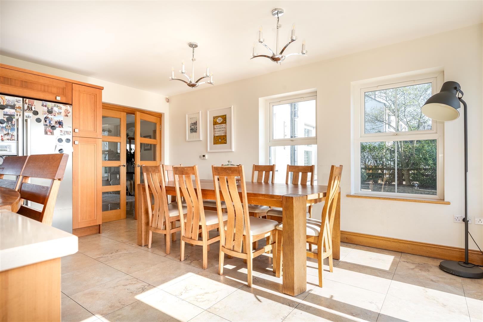21b Glastry Road is an exceptional 3,467 sq ft family home, thoughtfully designed and finished to an impressive standard throughout. The heart of the property is the open-plan kitchen, living and dining space, where a bespoke walnut kitchen with quartz worktops and quality integrated appliances flows naturally into bright dining and living areas. Double doors extend the space onto the rear patio, while the adjoining family room features a Jotul wood-burning stove, creating a warm and inviting focal point. A separate living room leads through to a sunroom with vaulted ceiling and dual-aspect views. The entire ground floor benefits from underfloor heating and includes a bedroom with ensuite, ideal for guests or multigenerational living.