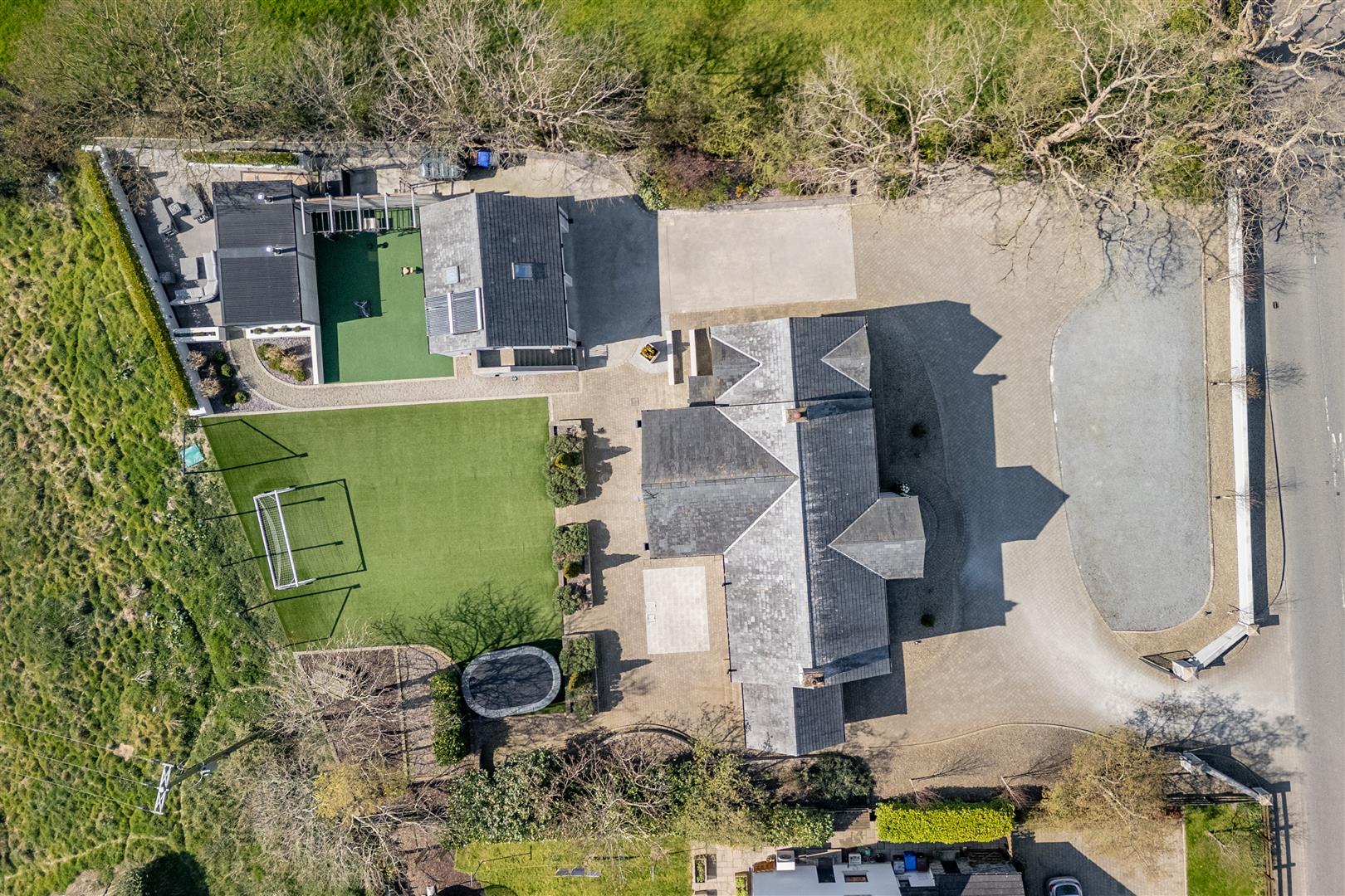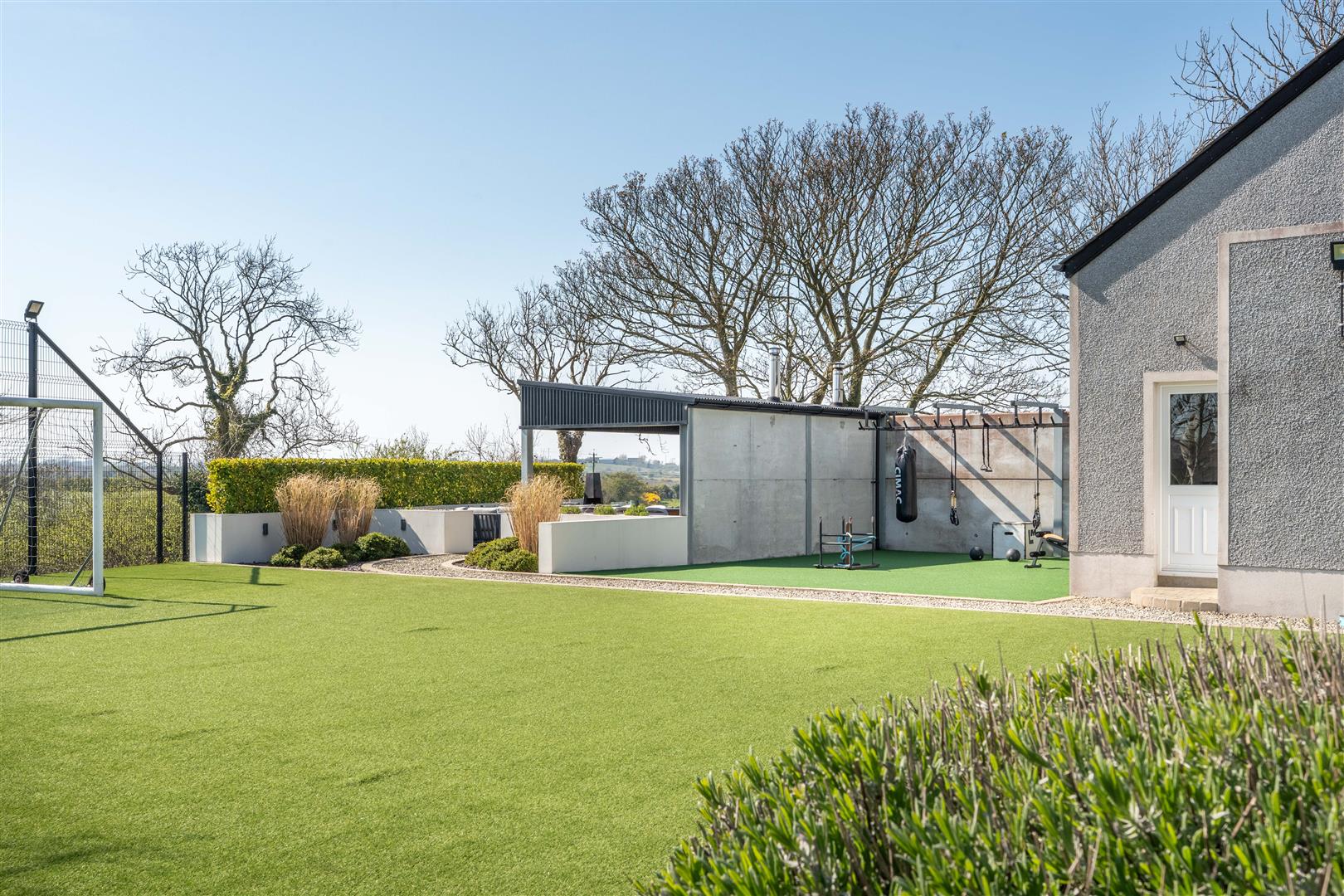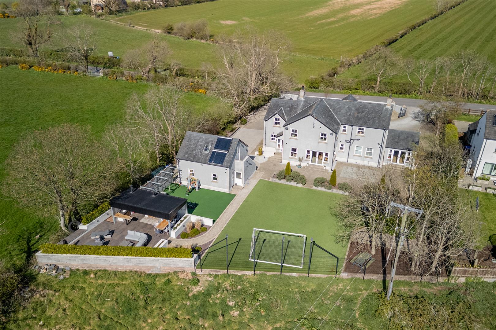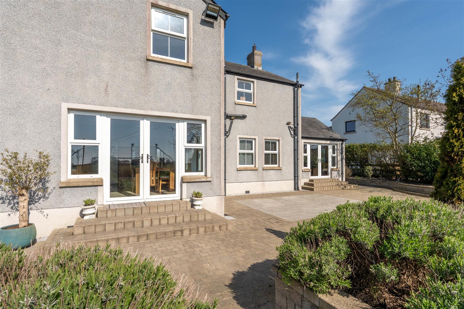 Approached through wrought iron gates, the property benefits from a substantial brick-paviour parking area with granite-stoned features, providing extensive space for cars, caravan, boat and more. The grounds are framed by mature Ash, Silver Birch and Alder trees.