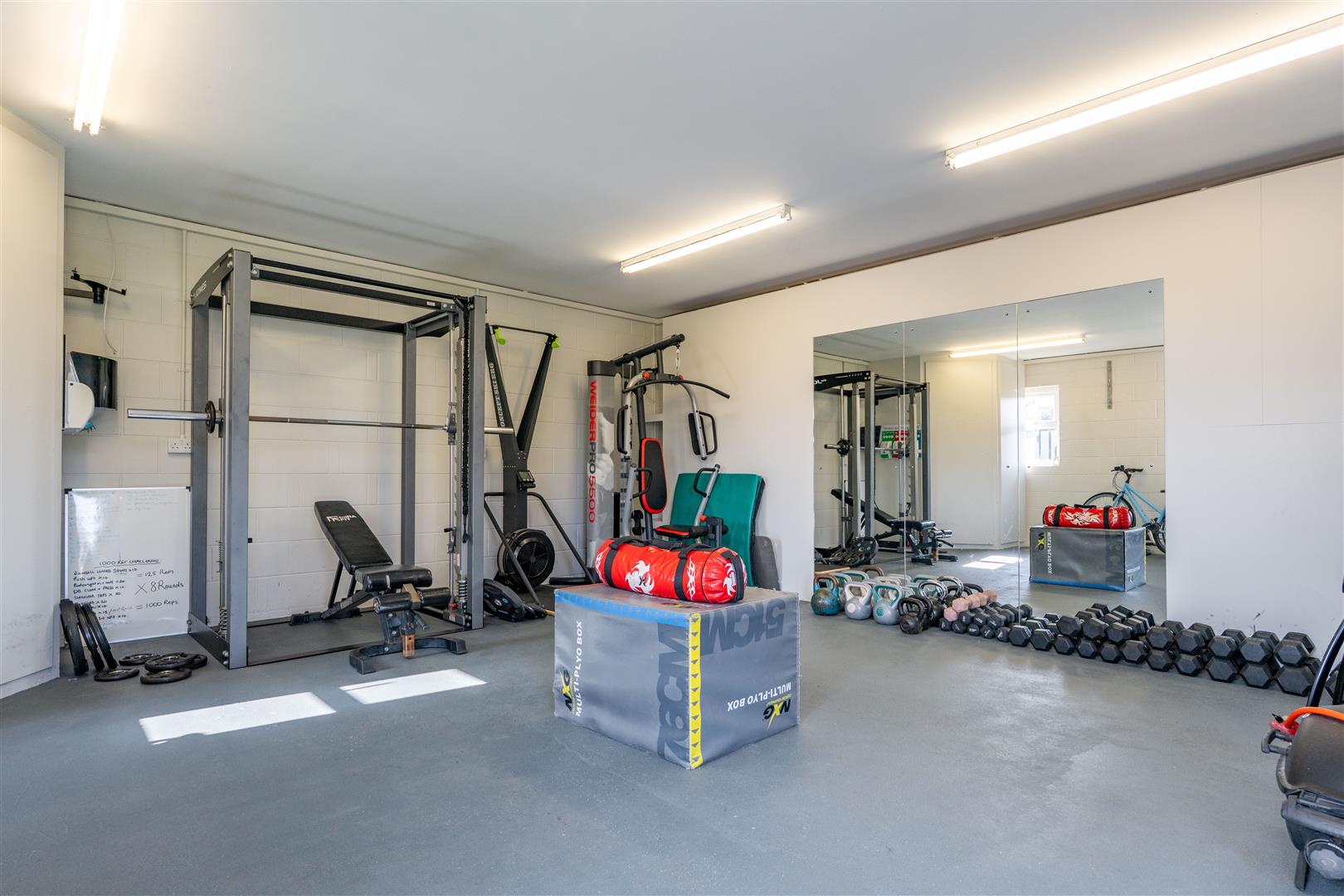 Currently used as a gym, fluorescent lighting. Boiler room with Grant oil fired boiler and Santon Premier Plus hot water tank, power, wifi connection and hot water solar panels.