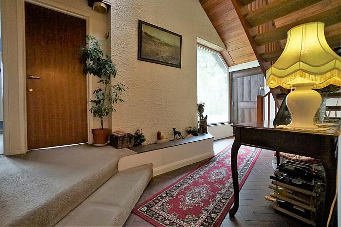 Lounge with Feature Brick Fireplace and Timber Beam Ceilings