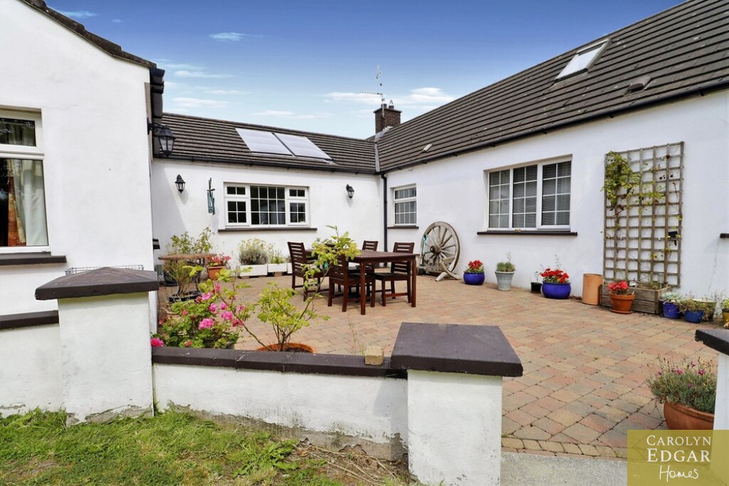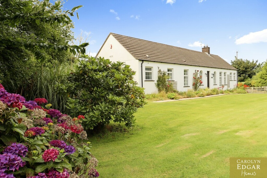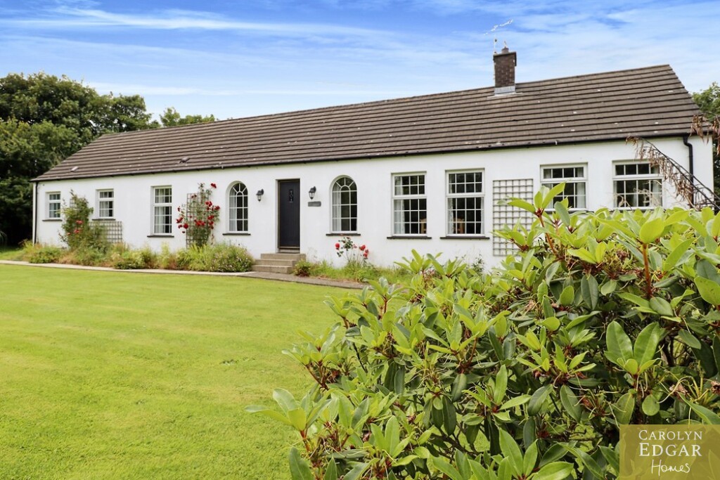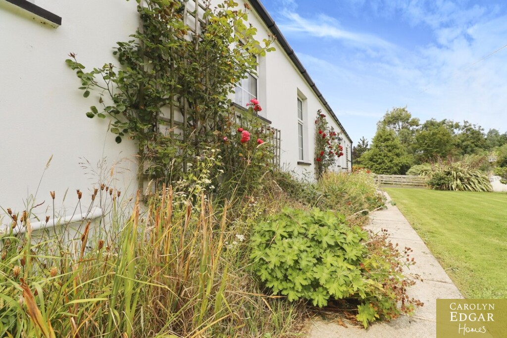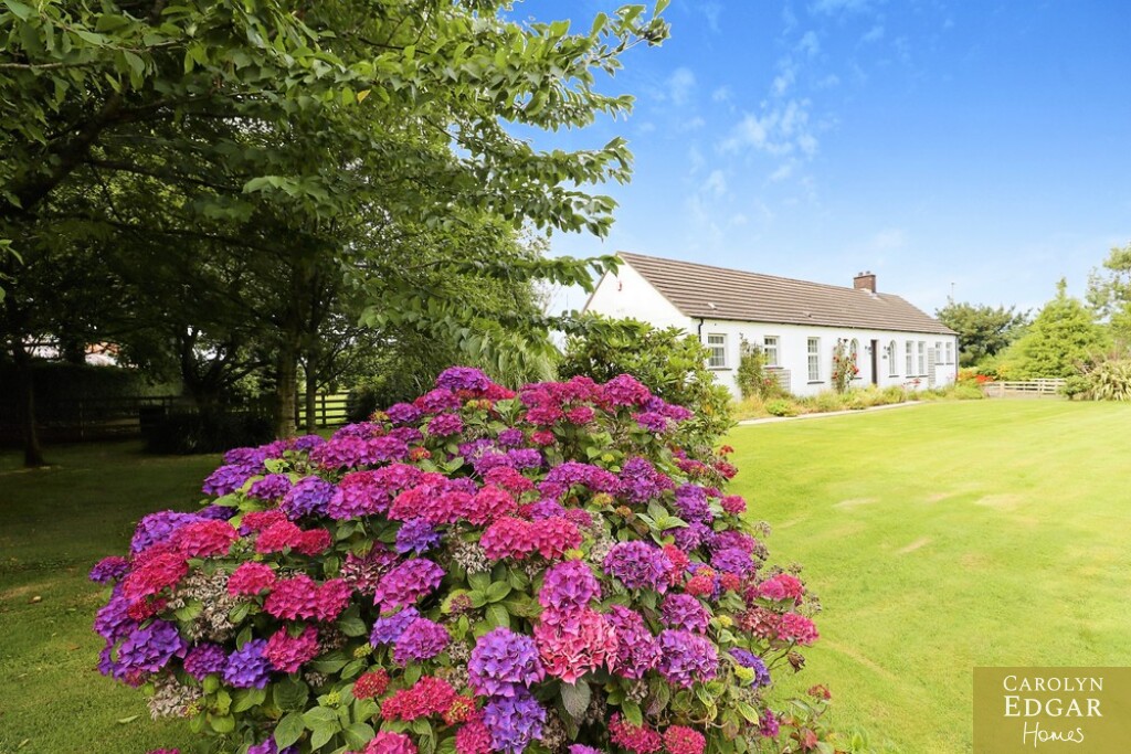 This charming five-bedroom cottage is set on an extensive site with wonderful wrap around gardens and woodland of circa one acre in a quiet location on the outskirts of Kircubbin. Offering a wealth of spacious accommodation throughout with a mix of both old-world charm with modern living the cottage is located close to the shores of Strangford Lough, between with the bustling market town of Newtownards and Portaferry with its marina, local amenities and schools as well as many spectacular local beaches only a short drive away there are a wealth of opportunities to enjoy the great outdoors and surrounding areas. Internally the property comprises of bright entrance hallway, lounge with welcoming fireplace and views over the cottage gardens, family room overlooking the gardens with feature brick inglenook fireplace with cast iron stove, extensive luxury fitted country style kitchen with range cooker and built in appliance, open plan to spacious third reception area with ceiling to floor brick feature fireplace with stove and dining area with double doors to paved courtyard area. The property also benefits from modern bathroom with hydrotherapy bath, second bathroom and utility room. Externally the property is set on a magnificent site with gated entrance at the front with ample car parking for several cars, horse boxes etc and perfectly maintained wrap around gardens laid in, lawn and with mature trees and shrubs, large garage and office/studio overlooking the gardens..a perfect position for some home working!