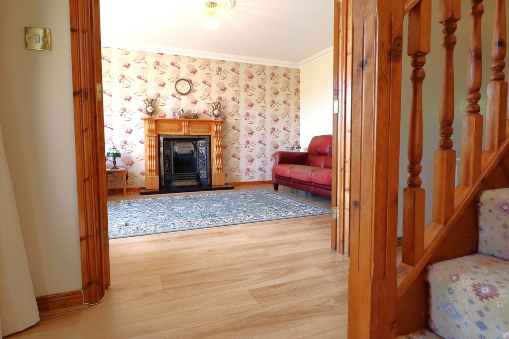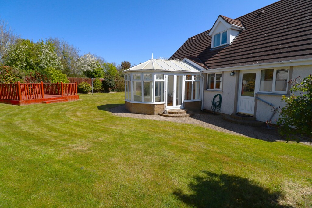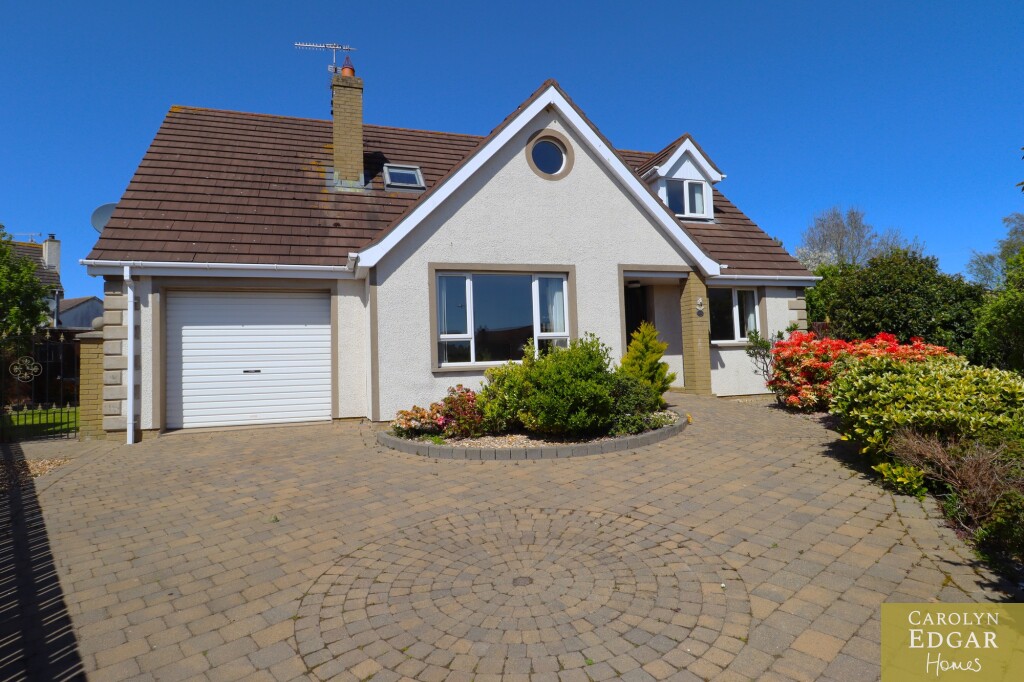This perfectly presented and spacious four bedroom home is set on a large corner site with fabulous wraparound gardens, offering a wealth of space both inside and out. Set in a quiet cul del sac with delightful countryside views this property will appeal to many purchasers from families to downsizers providing versatile and flexible living accommodation in quiet but central location. Internally the property comprises, on the ground floor, bright entrance hallway, spacious lounge with double doors from hallway, feature open fireplace and wonderful views over the well maintained front gardens, second reception or possible 5th bedroom, double bedroom with built in robes overlooking the rear gardens, large family bathroom, extensive fitted kitchen with casual dining area leading out the sunroom, utility room and large integrated garage. On the first floor are three large double bedrooms, two with built in robes and family bathroom. Outside the property has glorious wraparound gardens with gated paved driveway to the front and well maintained sunny rear gardens laid in lawn with mature trees and shrubs and decked sun terrace.