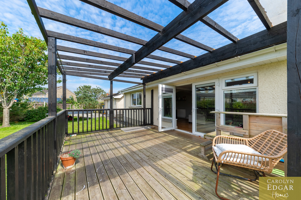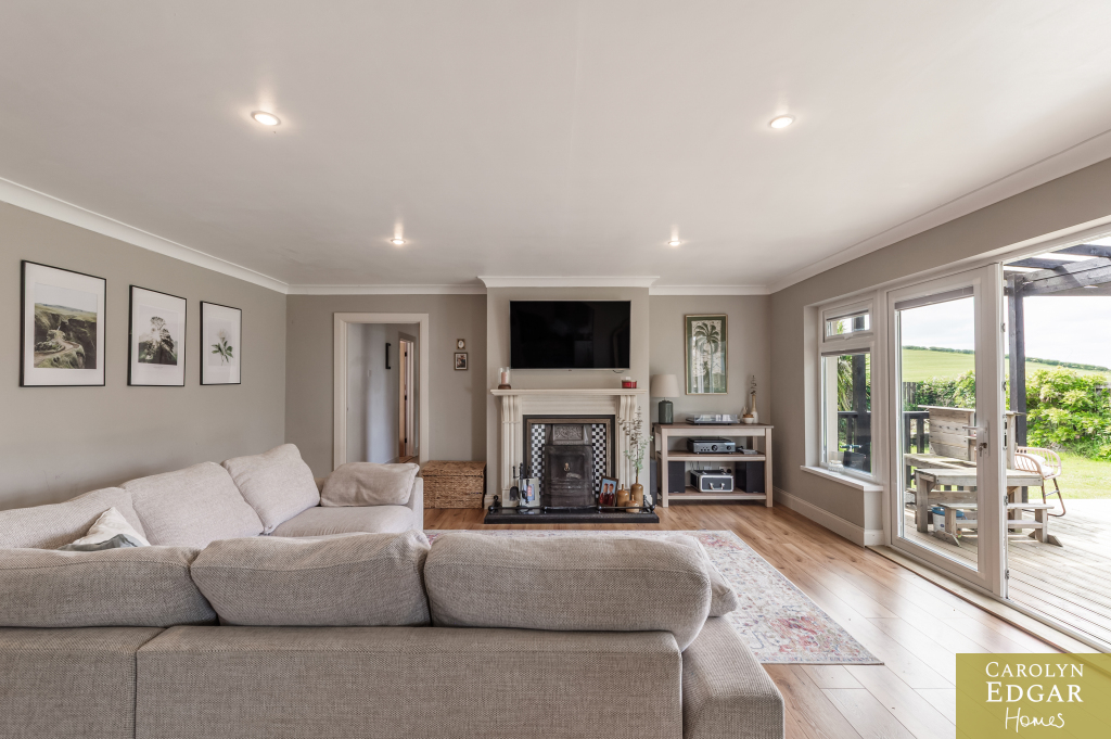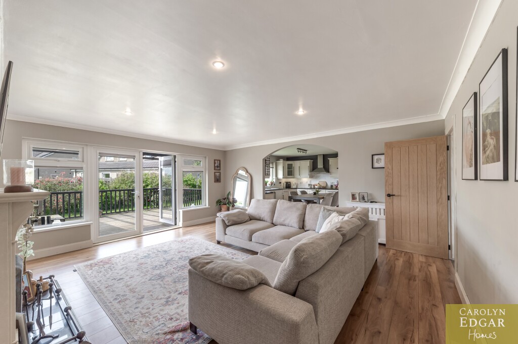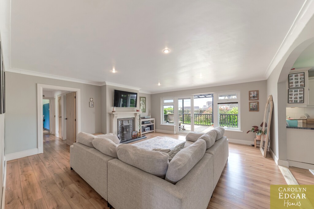 Designed for both relaxation and entertaining with an expansive interior layout, the heart of the home is in the inviting large open-plan living area with feature fireplace and double doors that open out onto a delightful breezy sun deckan ideal setting for enjoying sunny afternoons or hosting gatherings. The modern fitted kitchen, with dining area, is equipped with wide range of built in modern units and appliances and is complemented by a well-appointed utility room, Additionally, four generously sized double bedrooms, a stylish and contemporary bathroom and second reception/family room with open fireplace enhances the overall style and feel of this living space.